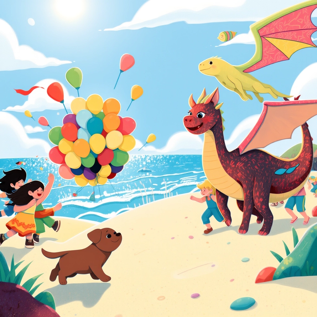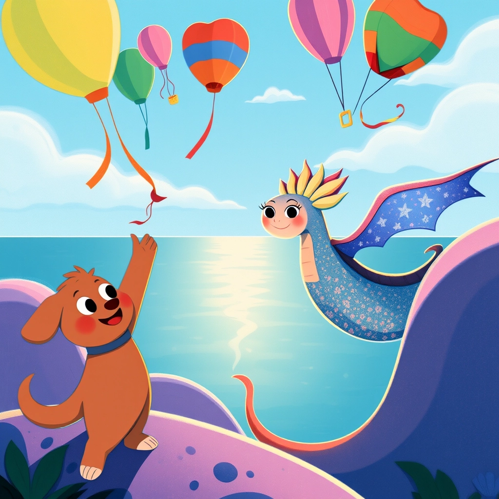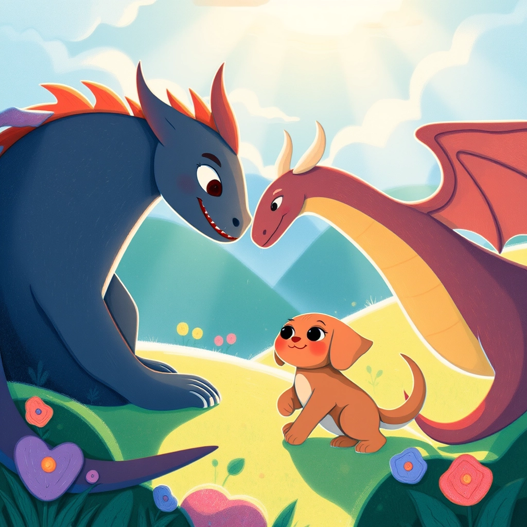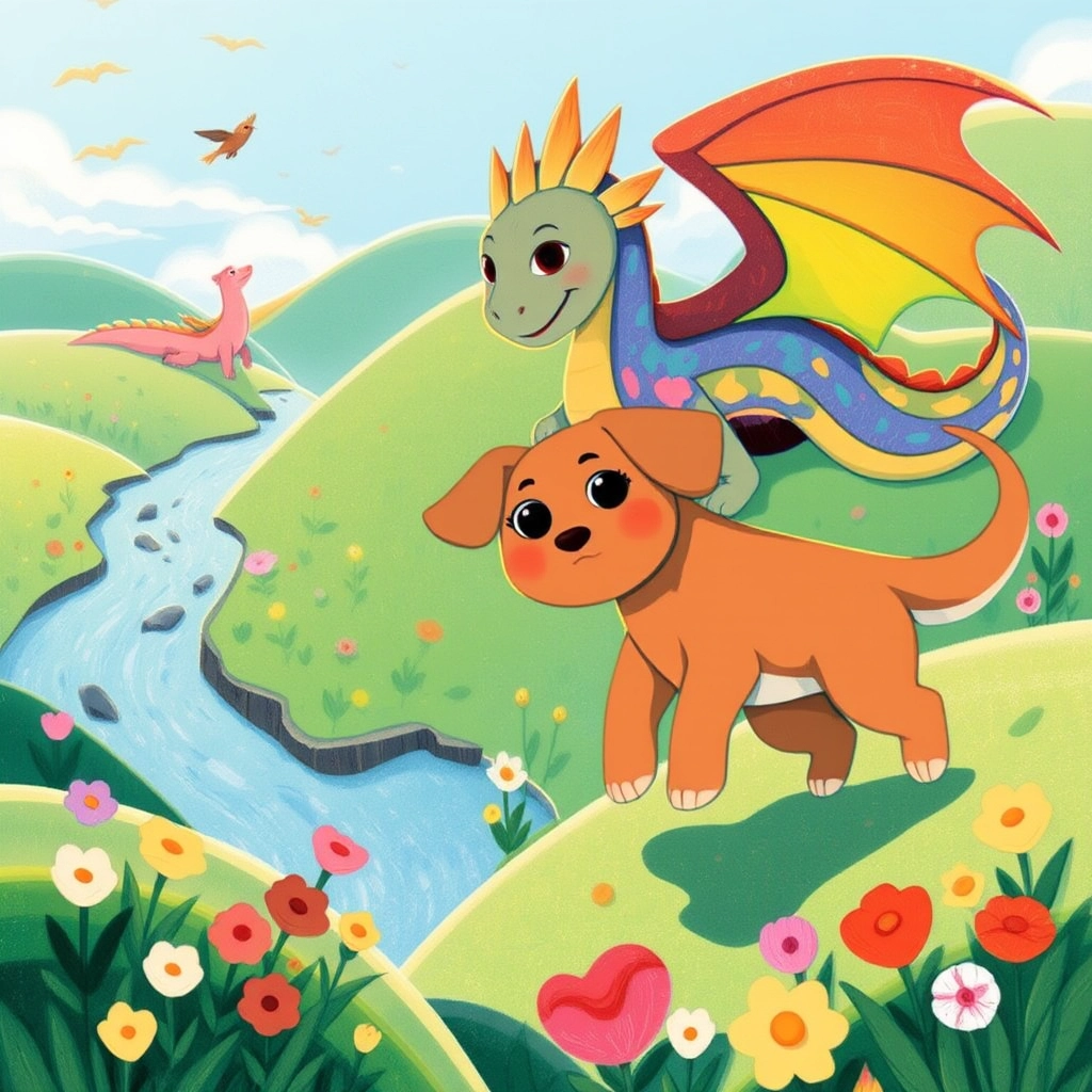 Once upon a time, in a cheerful little meadow, lived a funny little puppy named [Paws](NTV9BYDT). [Paws](NTV9BYDT) loved to leap, sniff, and chase butterflies, but one sunny day, he saw something unlike anything he'd ever seen before—a dragon was resting by the stream! It shimmered in the sunlight like a rainbow.