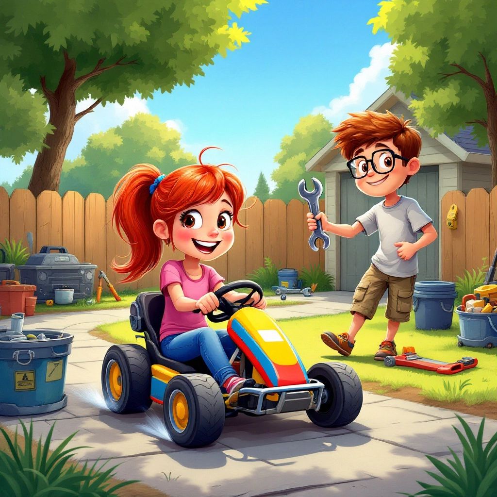 Every morning, [Sarah](B5TBVJ7W) practiced driving her go-kart on a makeshift track behind her house. Her best friend, [Max](GMF6GRVG), a tech-savvy boy with a keen interest in mechanics, helped her fine-tune her kart, making it the fastest in town.