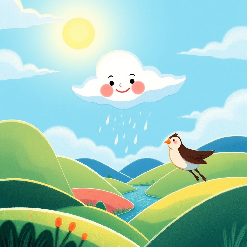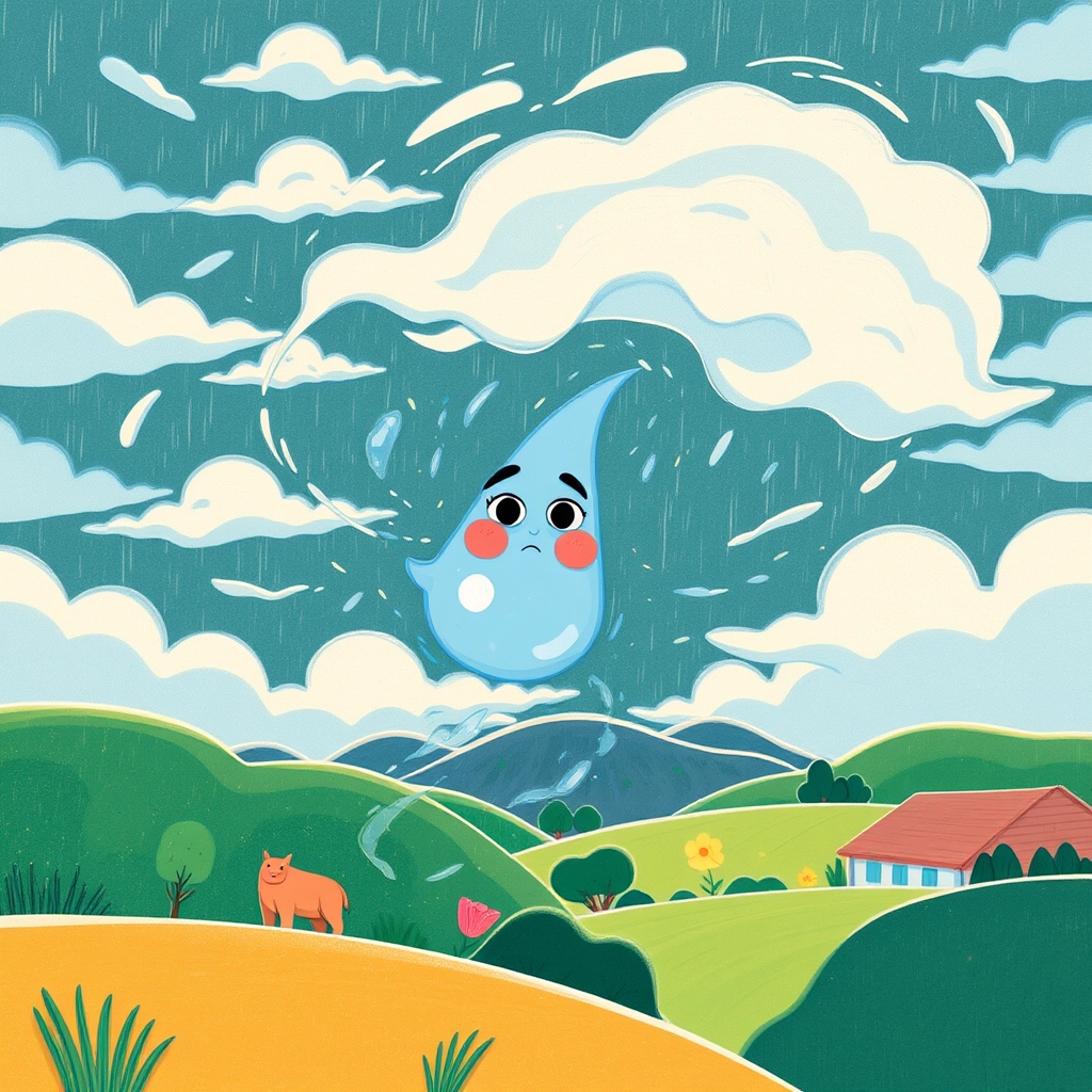 Once upon a time, a tiny, fluffy rain cloud named [Raindrop](TXX44HHB) was drifting happily in the sky. He loved to watch the world below and feel the gentle wind carrying him along.