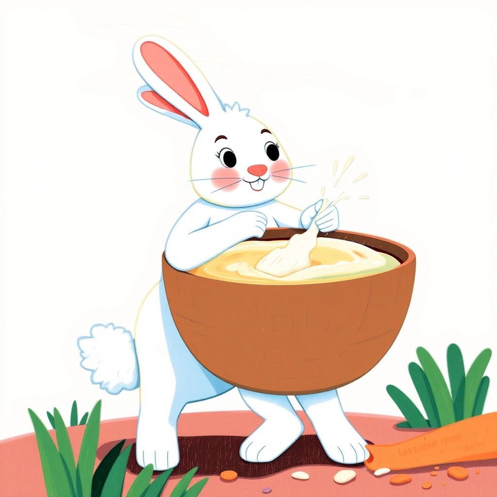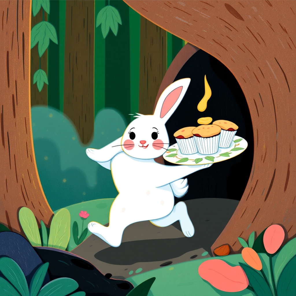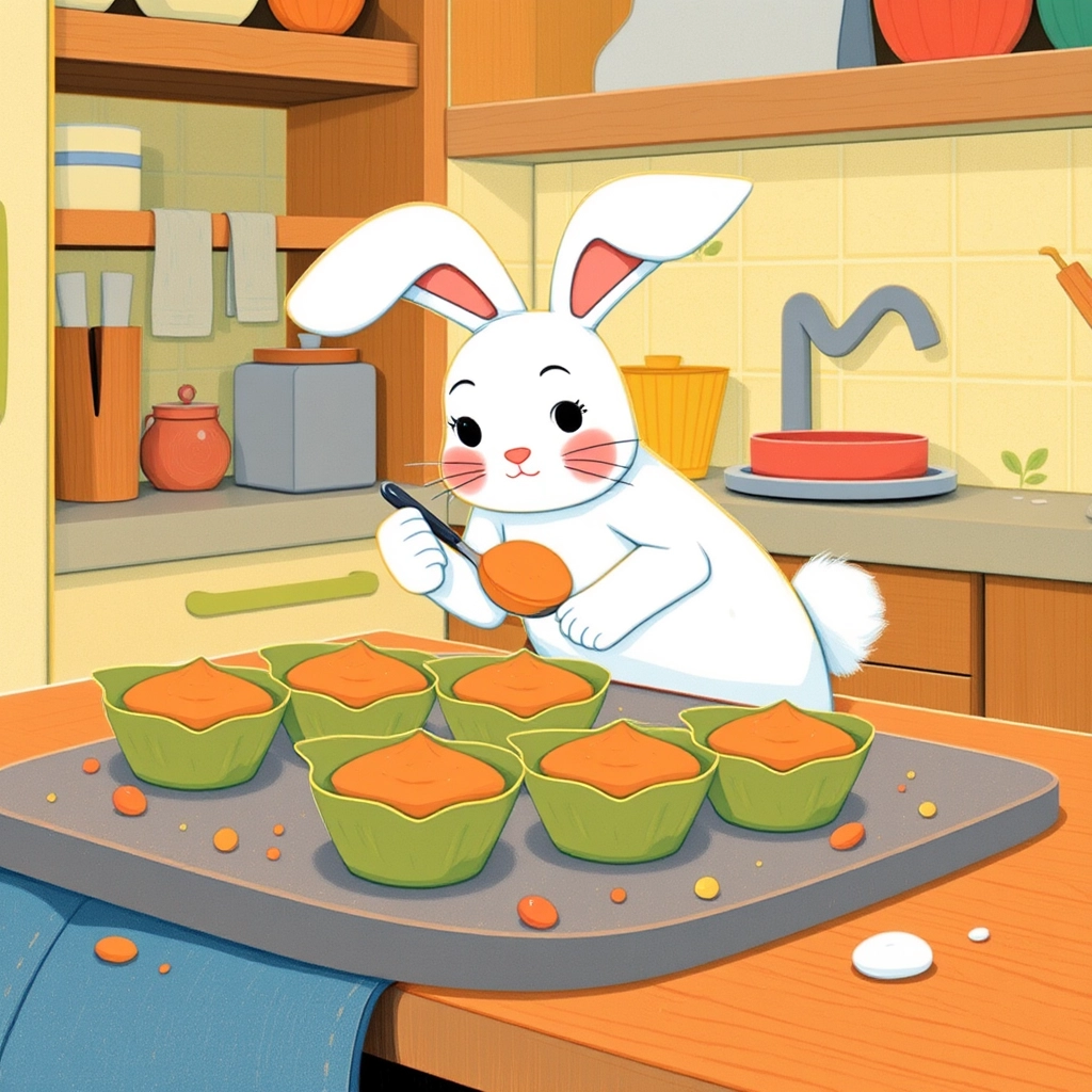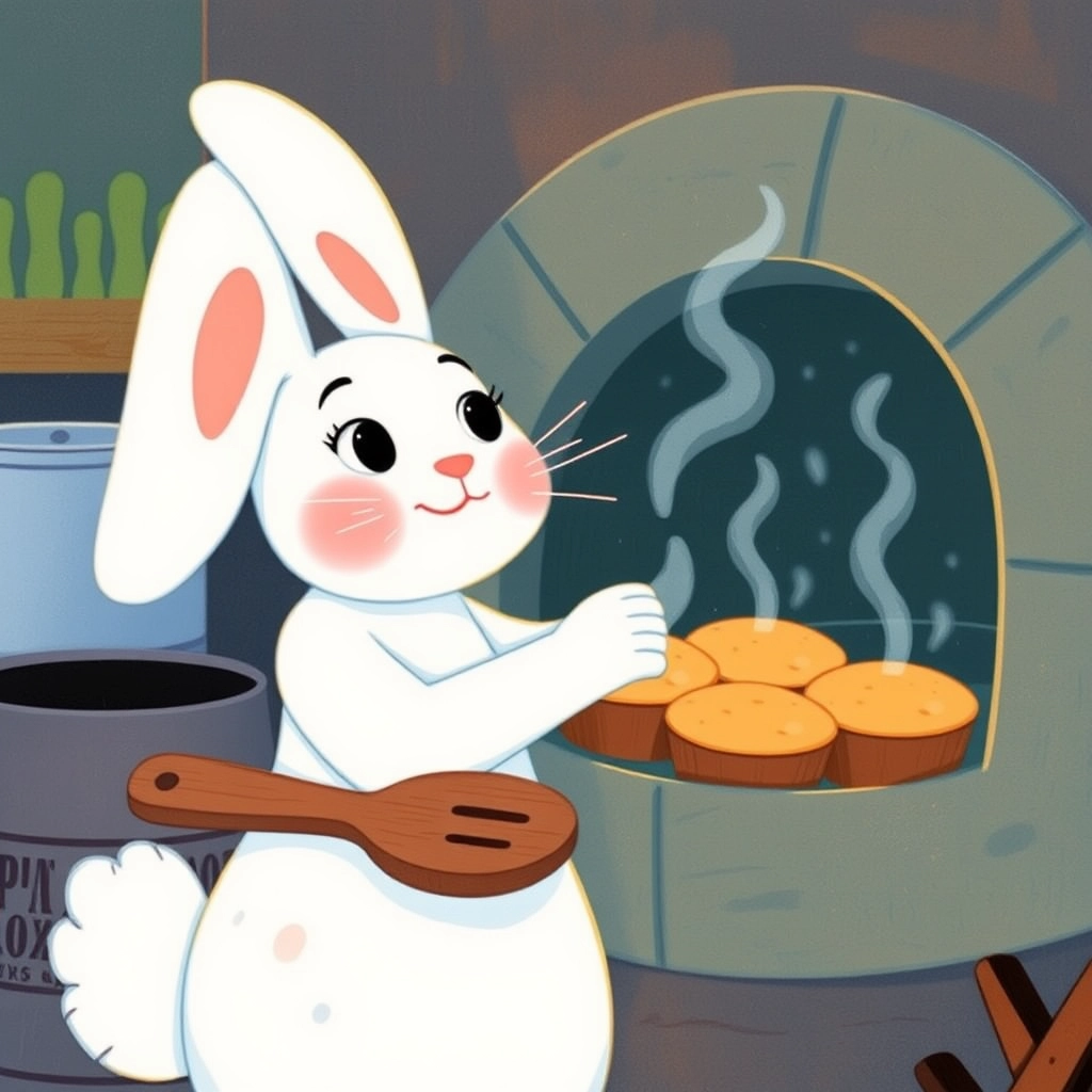 It was a sunny day outside [Rini](7XJK5L9W)'s cozy burrow. She sat up, her floppy ears twitching as she woke up from her nap. Today, she wanted to bake something delicious!