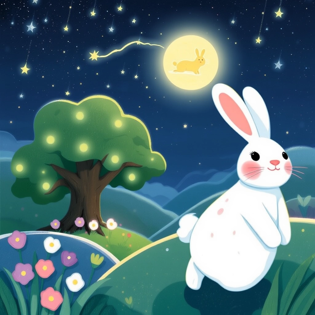 It was a sunny day in Tempest's Meadow, and [Rini](7XJK5L9W), a little bunny with soft white fur and a pink nose, was taking a nice nap in her cozy burrow beneath a giant oak tree. She loved the peace and quiet of her home.