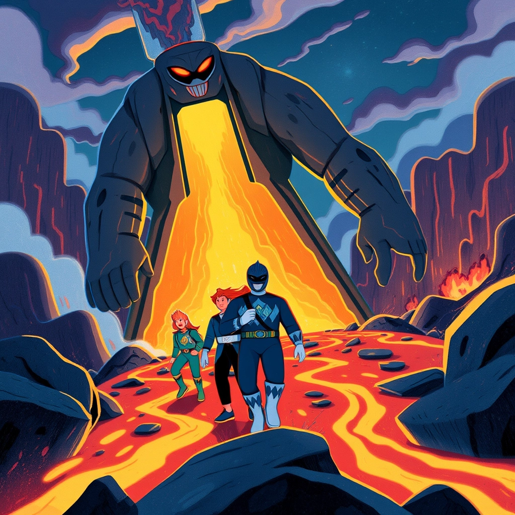 The Power Rangers landed on Lava 2.0, ready for action. They marveled at the fiery landscapes but quickly spotted trouble brewing in the distance — [Volcaflare](DM2WVHY6) was heading their way!