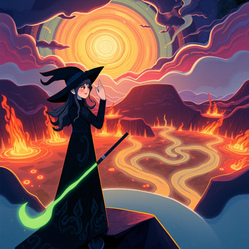 Far away in the vastness of space, [Rita Reposa](BYKD27TT), a girl with the striking appearance of a cunning witch, discovered a new planet she named Lava 2.0. This planet was alive with bubbling volcanoes, molten rivers, and skies that glowed in shades of fiery orange and deep purple.