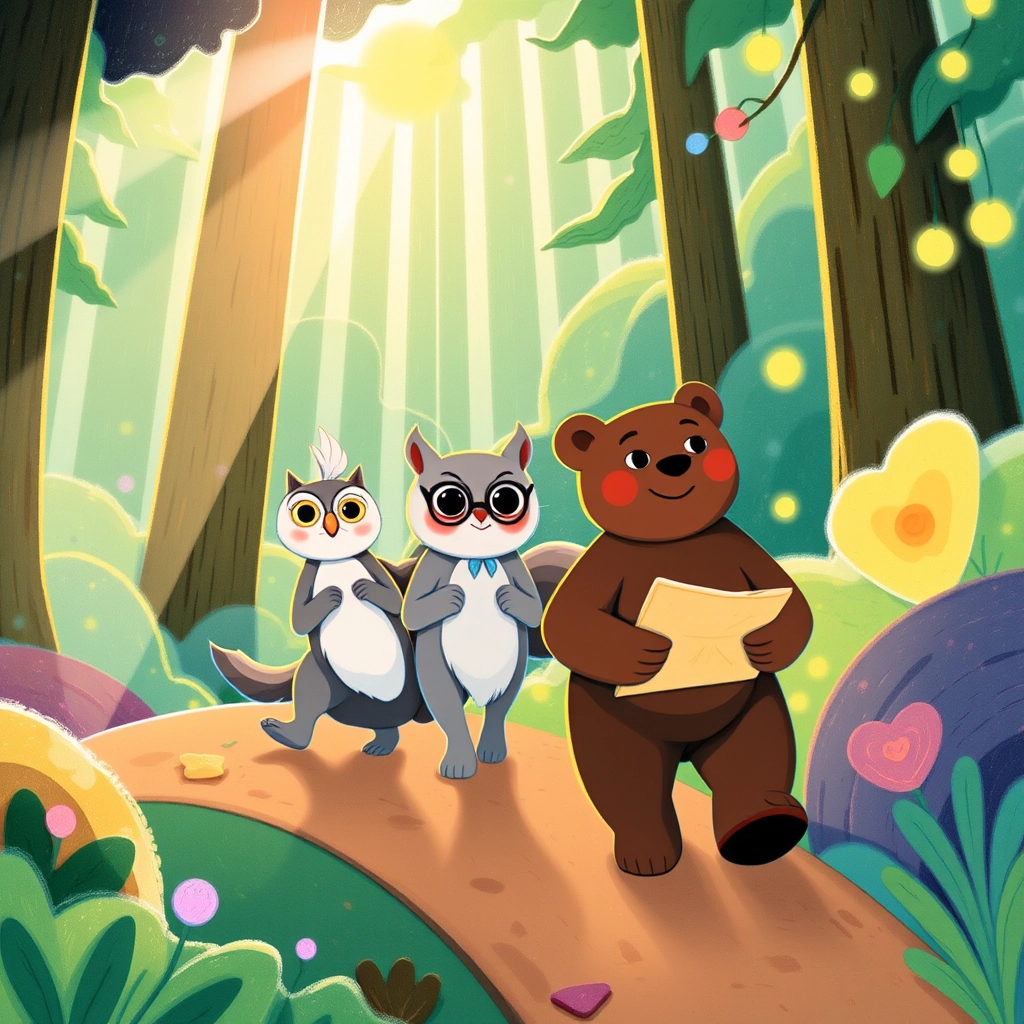 [Sammy](CZDP5KHC), [Nibbles](LQ5M392F), and [Oliver](HM9PKB2Q) promised to always go on adventures together, and the magical forest echoed with their laughter as they started planning their next journey.