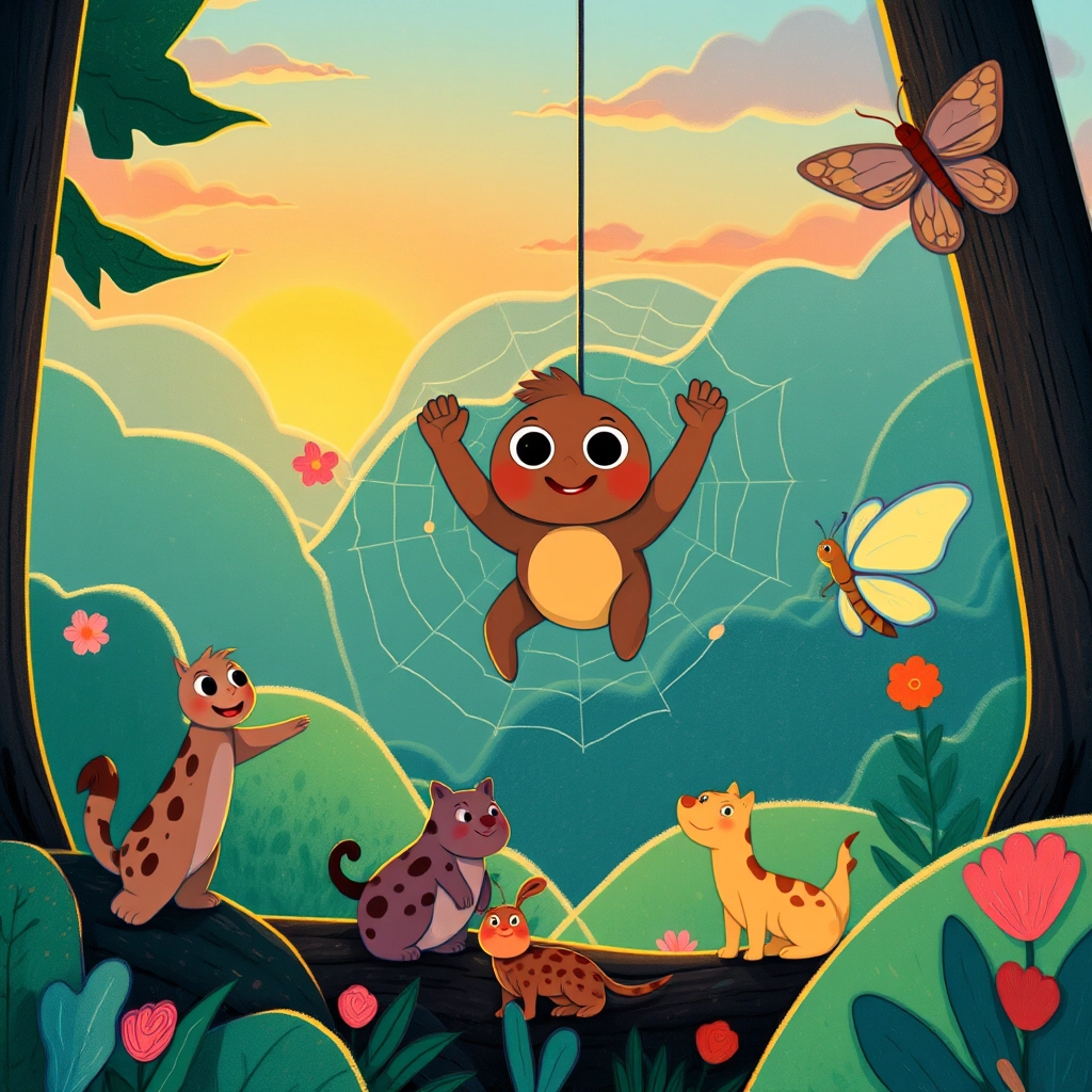 In a cozy corner of the forest lived [Sammy](JSQMW7T7), a little spider with a big secret—his toots went 'toot-toot' like a tiny trumpet!