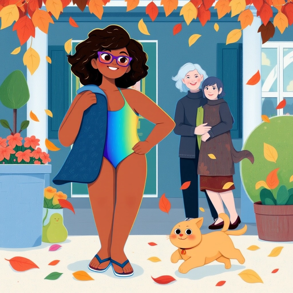 As they walked outside, her mom handed her a coat because it looked chilly. But [Sarah](R97YPT37) said, 'No, thank you!' and put on her swimsuit instead.