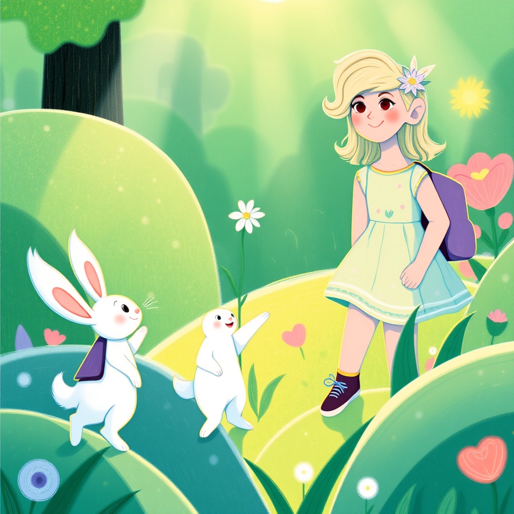 As Shaelah stepped into the meadow, she was greeted by [Whiskers](MLPYC5HC), a mischievous rabbit with a tiny purple backpack. "Happy Birthday, Shaelah!" he said, offering her a daisy.