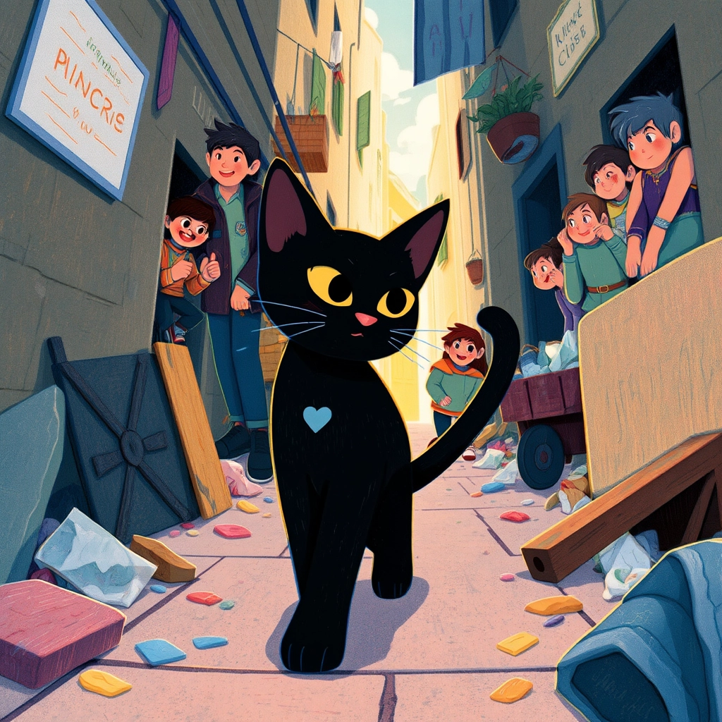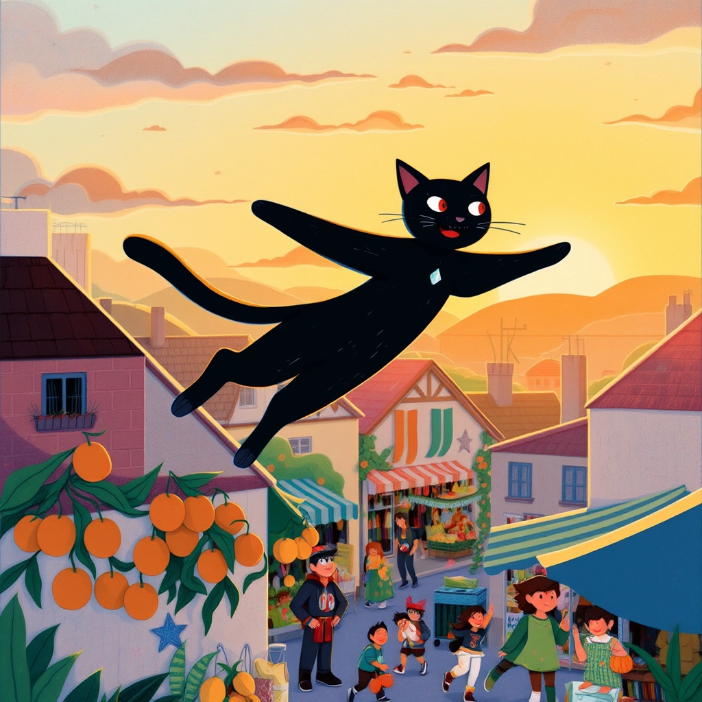 In a sunny city by the sea, lived a little black cat, wild and free. Her name was [Tel Aviv](KRJZWVRS), sleek and wise, with moonlit fur and starlit eyes.