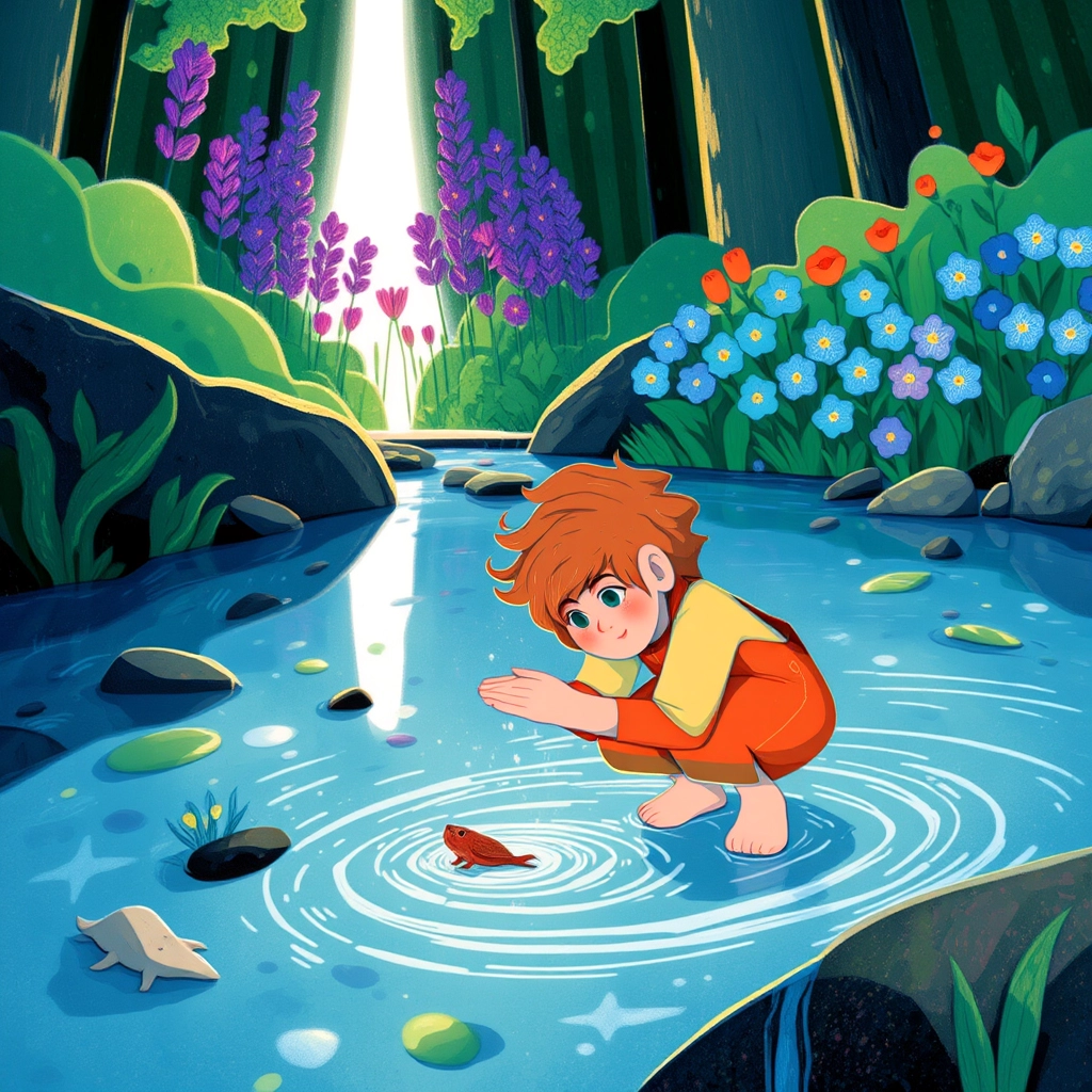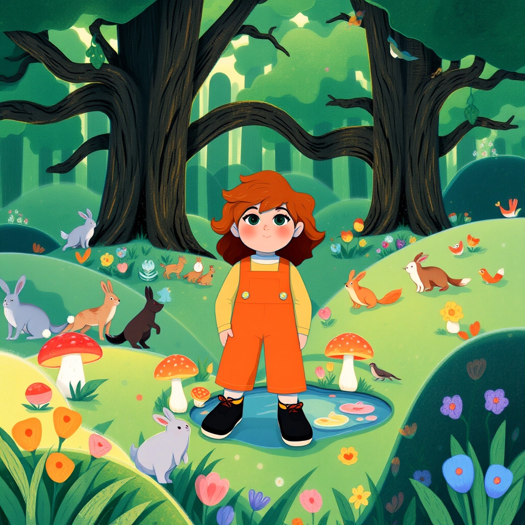 The squirrel led her to a hidden meadow full of animals, flowers, and glowing mushrooms. It was a magical gathering place only a few humans had ever seen.