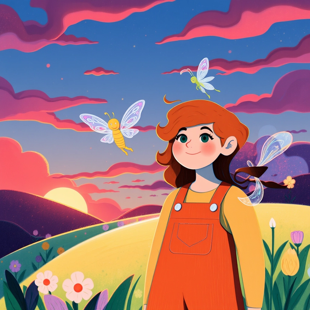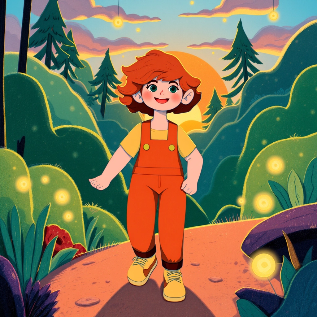 When the sun started to set, Lila fluttered to her shoulder and whispered, 'You can always come back and visit whenever the woods call your name.'