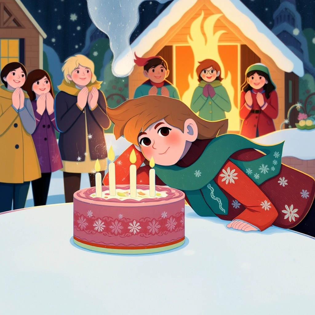 As the sun set, [Siera](PSSD24PF) made a wish before blowing out the candles on her birthday cake. 'I wish every Christmas could be as special as today!' she said, and everyone cheered.