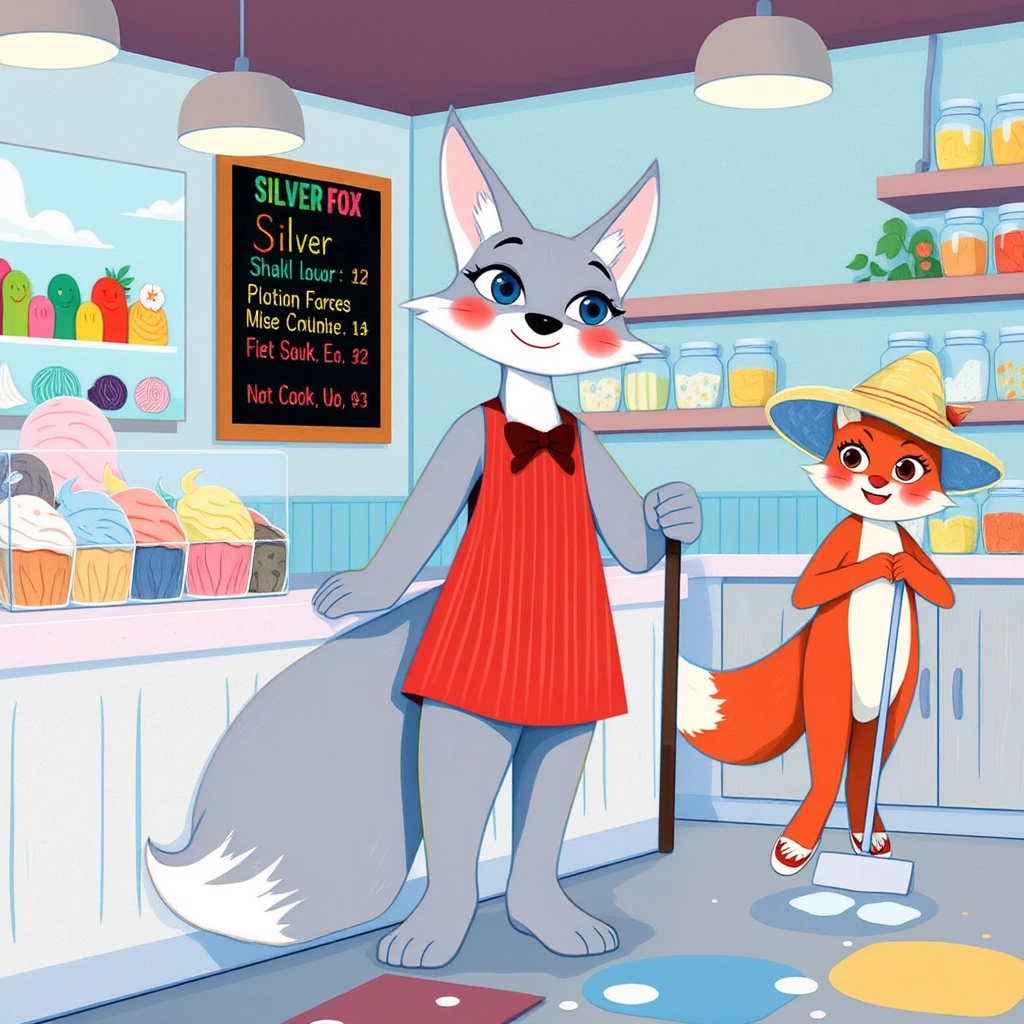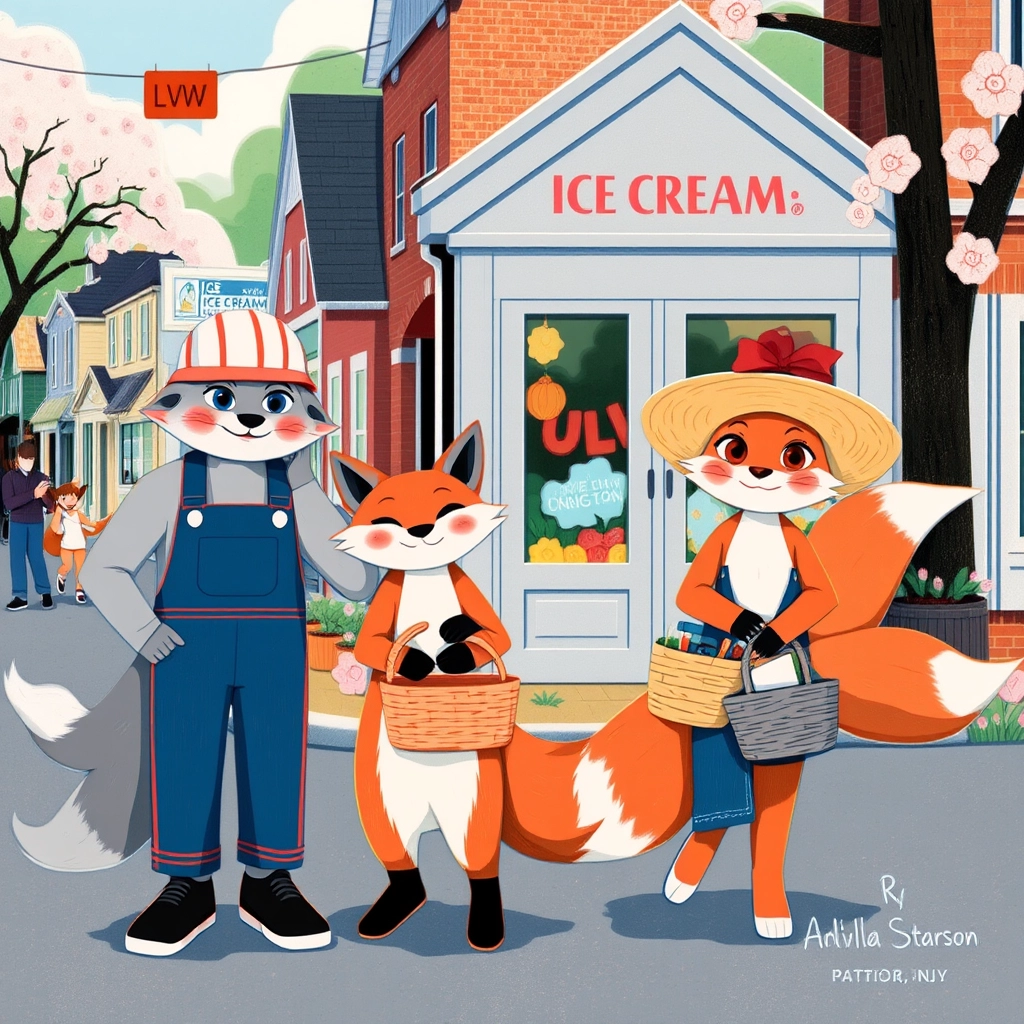 Once upon a time, in the delightful town of Paterson, NJ, [Silver](33MMJ6XC), a hardworking fox, dreamed of owning his very own ice cream shop. Beside him was his clever and supportive girlfriend, [Ruby](N7PJXQ6F). Together, they started building their dream: [Silver](33MMJ6XC) Fox Ice Cream Shop.