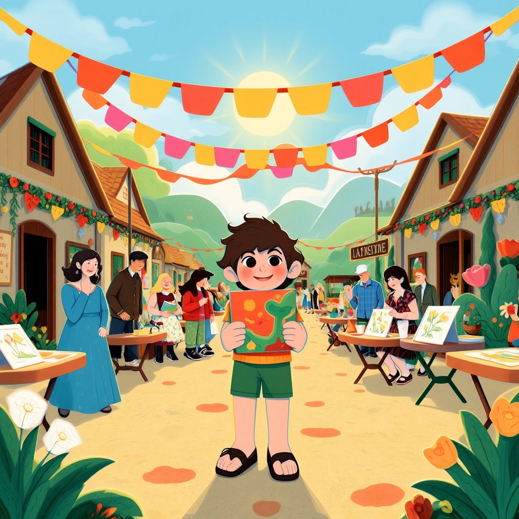 [Toto](TVZ4LQTK) worked hard on his drawings. With each day, his pictures became more colorful and full of life. The villagers gathered to admire his amazing artwork, even hanging them in their homes.