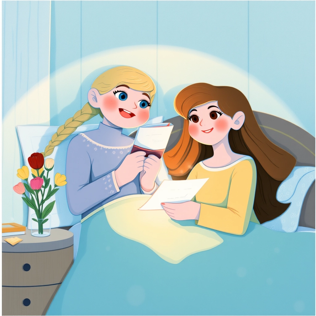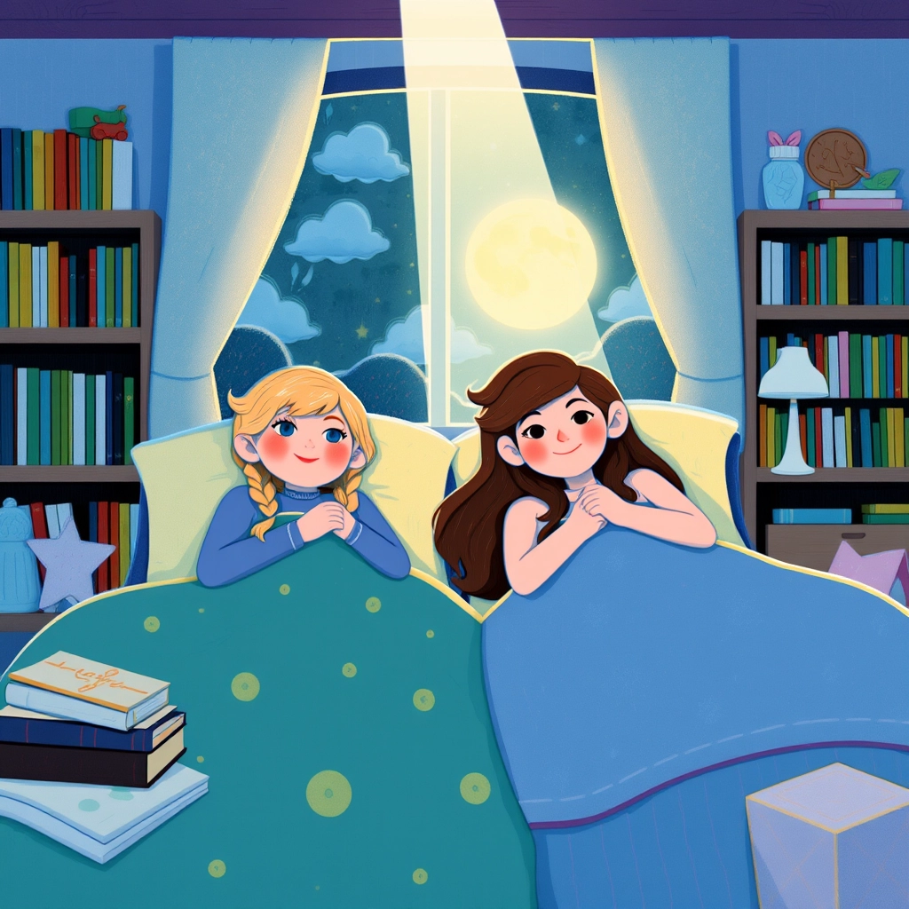 But one day, [Rosie](37CL3HMF) didn’t feel well. Her cheeks were warm, and she was too tired to play. [Lily](RBSXT9ND) stayed by her side, read her books, and tucked her in with their favorite blanket.