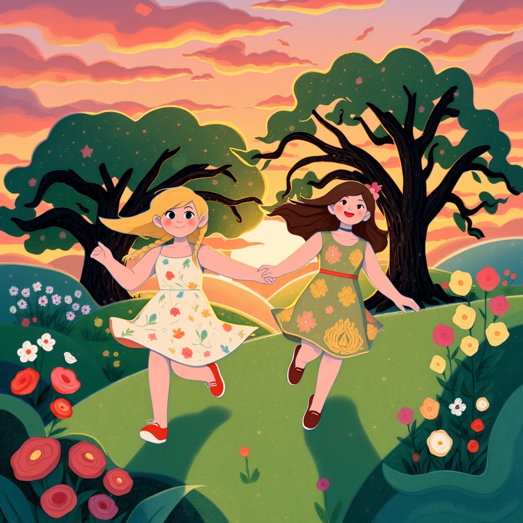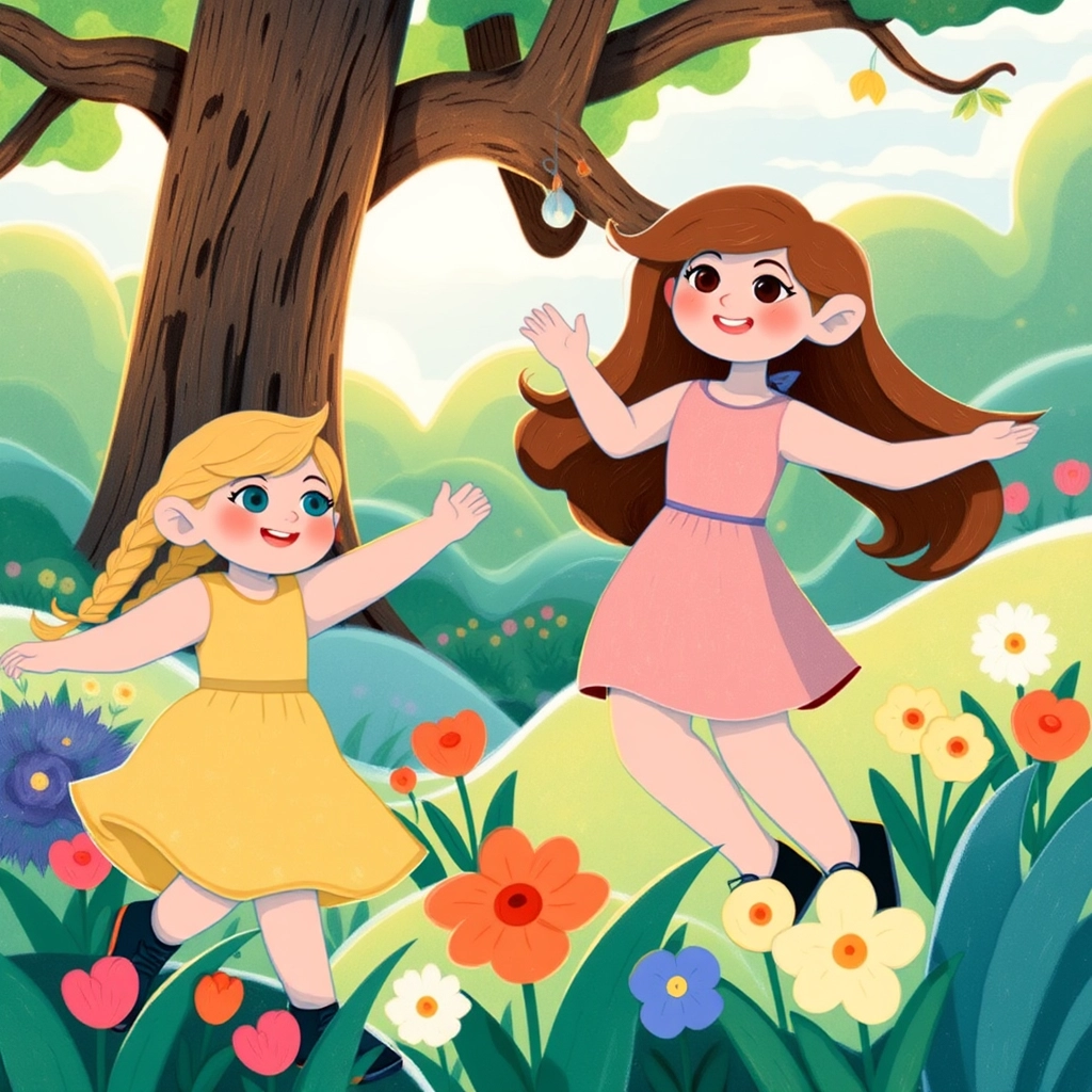 Once upon a time, there were two sisters, [Lily](RBSXT9ND) and [Rosie](37CL3HMF), who loved to play together every single day. Their laughter filled the air as they danced in the garden, made flower crowns, and shared their dreams under the big oak tree.