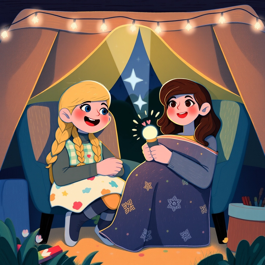 As [Rosie](37CL3HMF) slowly got better, [Lily](RBSXT9ND) decided to make their days indoors special. She set up adventures in [Rosie](37CL3HMF)’s room, using pillows, chairs, and blankets to build forts and tunnels.