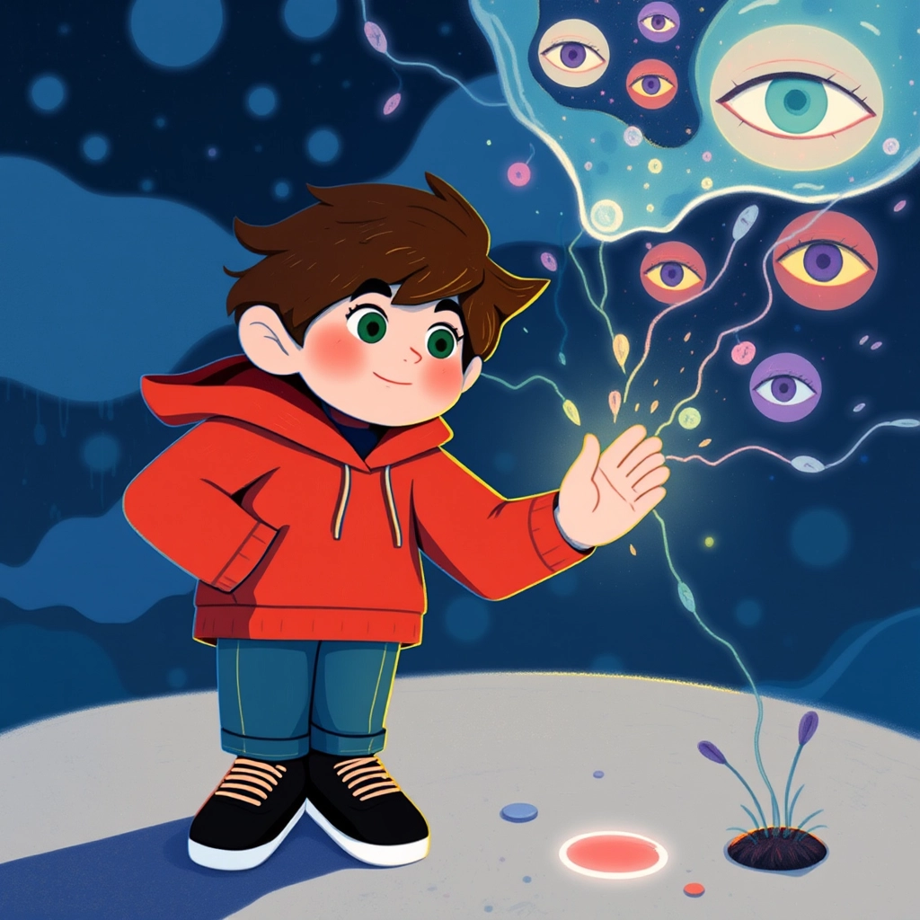 [Milo](N2GD5P5W) hesitated but reached out his hand; suddenly, he could see through the membrane's eyes and feel their confusion and fear.