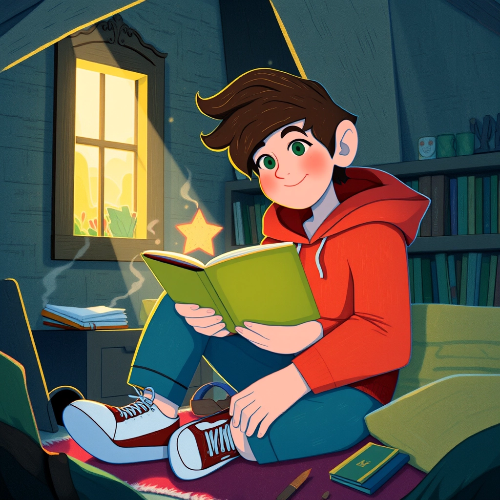It all began on a sunny afternoon when [Milo](N2GD5P5W), a curious 12-year-old, found an ancient book that glowed faintly in his parents' attic.
