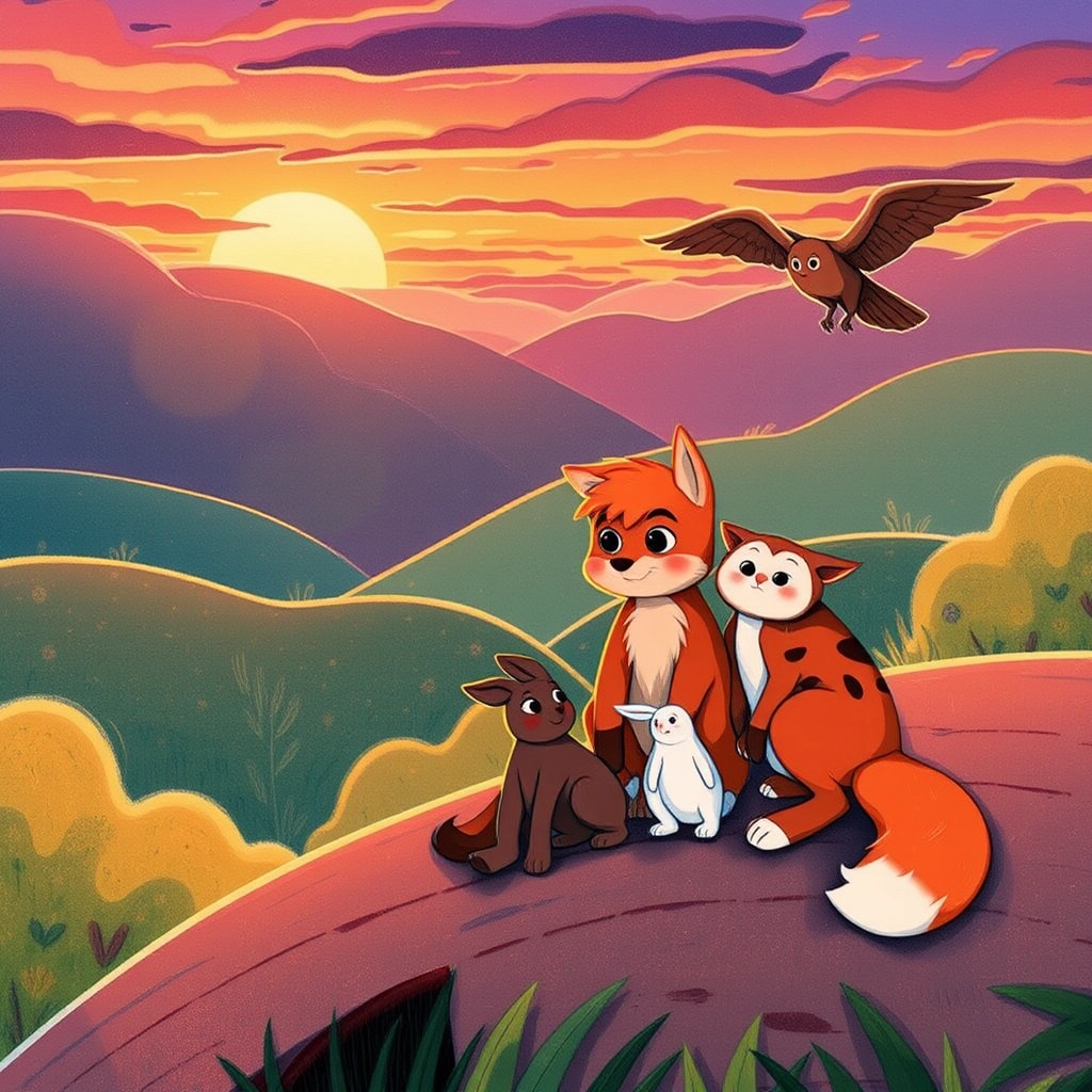 The owl suggested they all climb the hill to see the most magical sunset of the year!