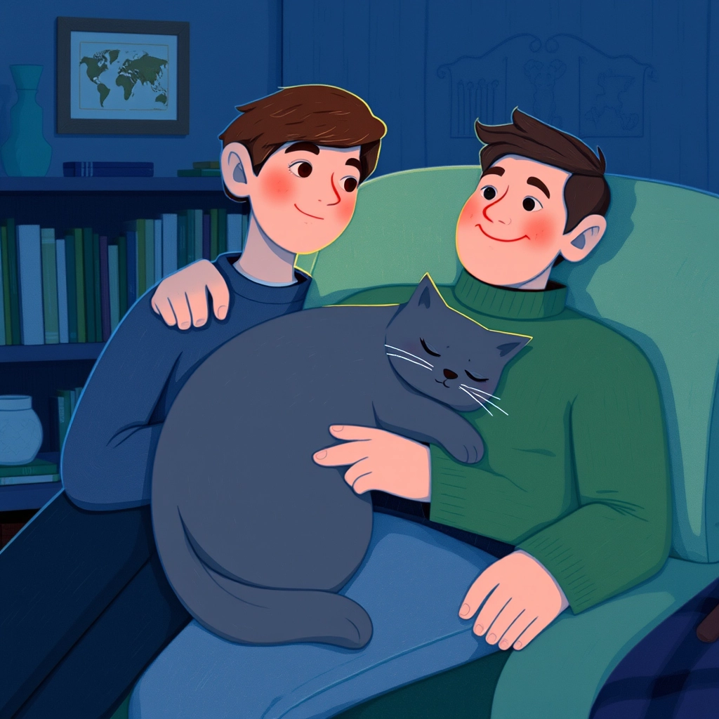 As the day ended, [Smokey](F3N6PQZ7) curled up beside [Max](DVHHCQ9P) on the couch. He realized that every day might bring a little distance, but love always brought them back together.