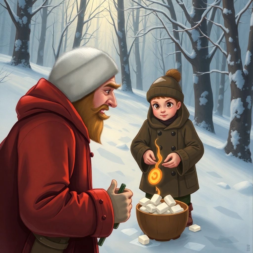 На помощь пришёл волшебный Зимний Ветер. Он одним махом потушил пламя, оставив только тёплый пар. 'Нужно быть осторожнее со спичками,' — строгим голосом произнёс он.