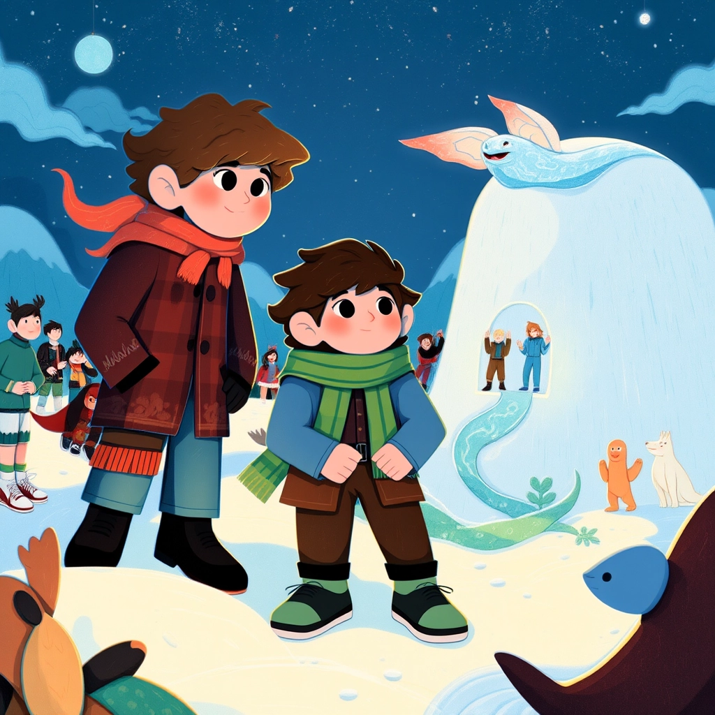 As they walked home under the cold, starry sky, they spotted a luminous snowflake landing on [Max](4GNKNPZS)’s mitten. “Every snowflake is unique!” said [Lily](7ZPSCZ9F) with wonder. “Kind of like us.” They laughed together, their hearts warmed by unforgettable memories.