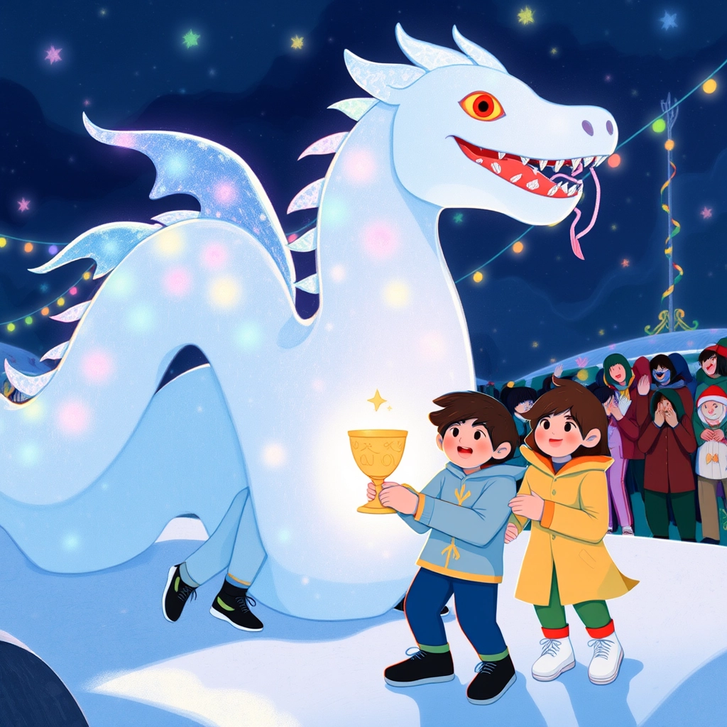 As the Winter Solstice festival approached, the trio decided to participate in the ice sculpture contest. “Let’s make a snowball dragon!” suggested [Max](4GNKNPZS), and the team got to work. They learned to chisel and carve, shaping glistening snow and ice into delicately detailed scales.