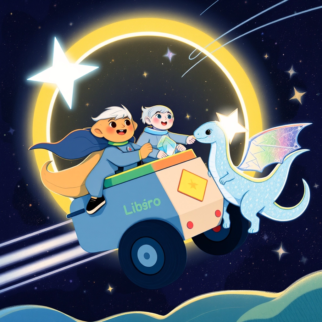 Exploring the sparkling planet, they met a cube-like dragon named [Lumi](432QVHZB) who guarded the Star Crystal. [Lumi](432QVHZB) explained, 'I didn’t steal it! I found it lost here and kept it safe. Will you help bring it back to the stars?'