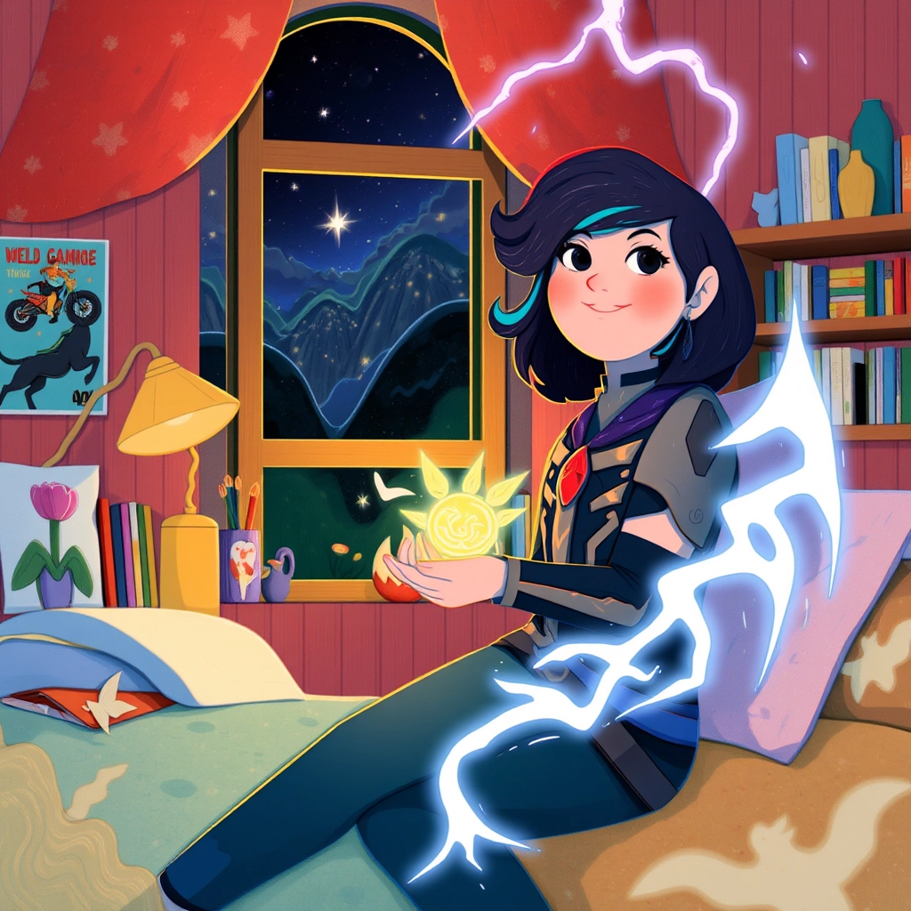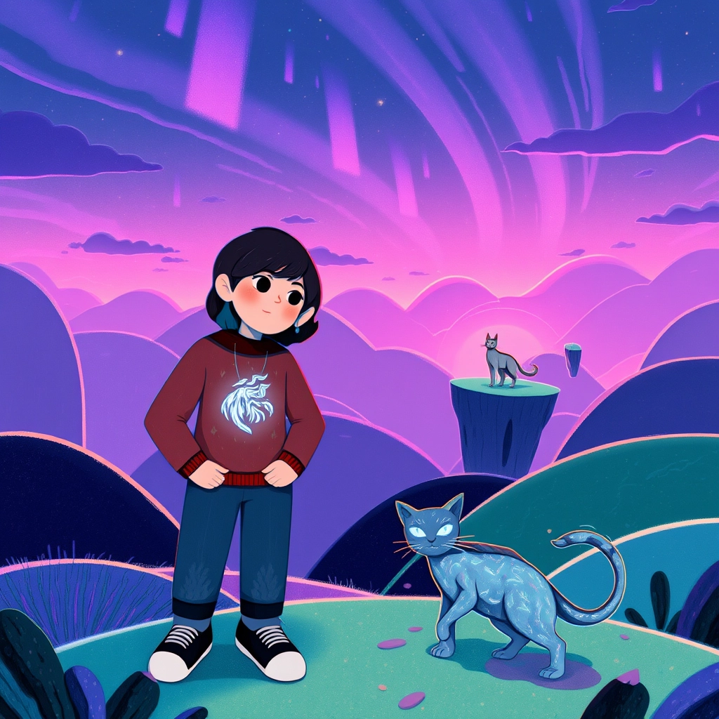 [Megan](PNT6H2DL) stumbled into the vibrant world of Echo Realms, where the skies shimmered with auroras, and digital trees swayed like they were alive. A voice greeted her—it was [Nox](K2DNQL77), a glowing feline AI guide who explained that the game was real, the world was in danger, and [Megan](PNT6H2DL) was chosen to become a Spirit Guardian.