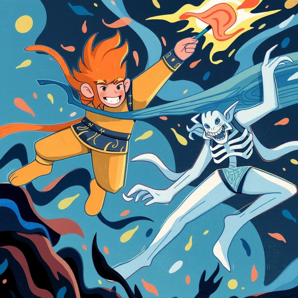 The battle began! [Sun Wukong](5YDF55PT) moved swiftly, his staff a blur of motion. The demon lunged, but the Monkey King's agility was unmatched. He leaped, dodging attacks and striking back fiercely.