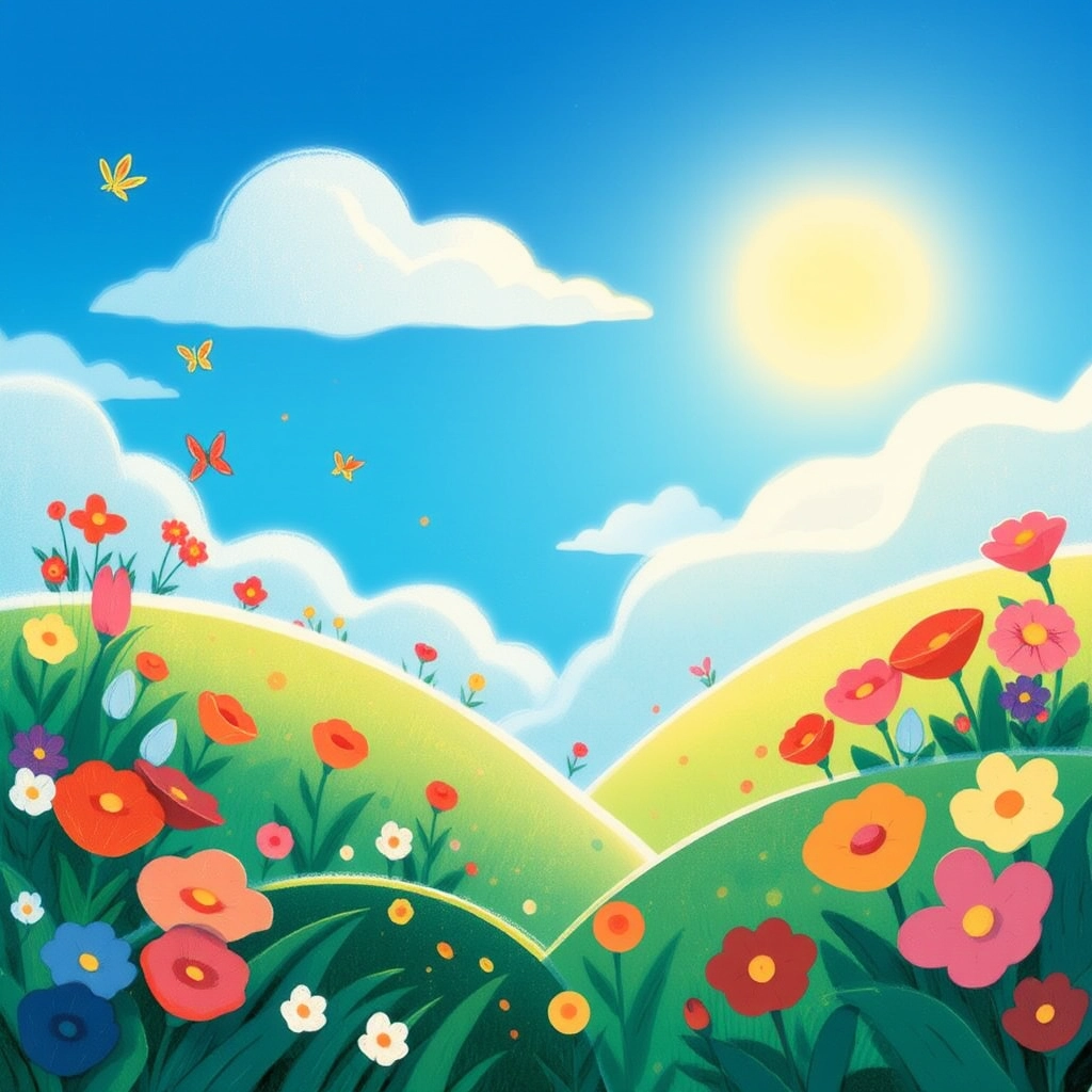 It was a sunny day in Brightwood Meadow, where the colorful flowers swayed in the gentle breeze and the sky was as blue as a robin's egg.
