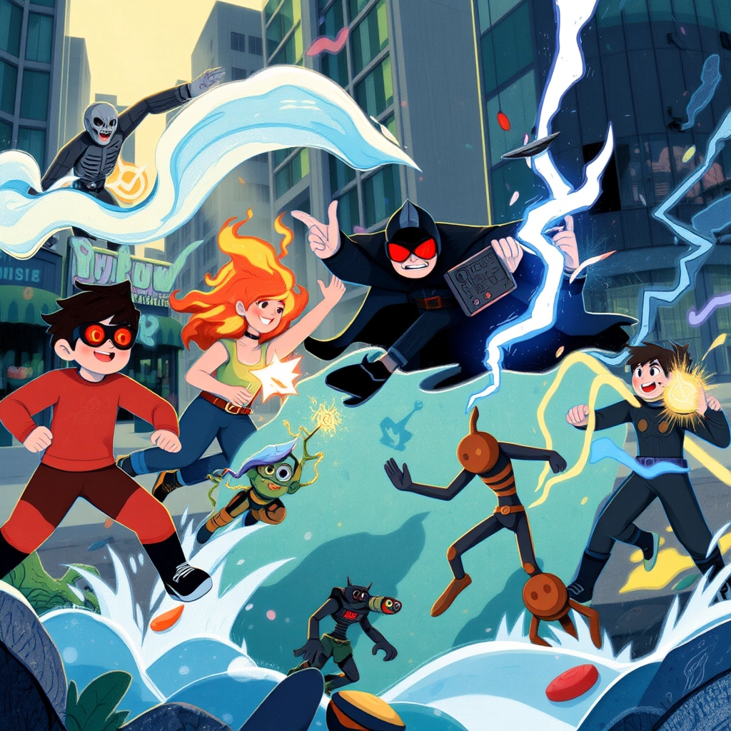When they touched the chest, a burst of energy transformed them into superheroes with incredible powers—water, fire, nature, and electricity!