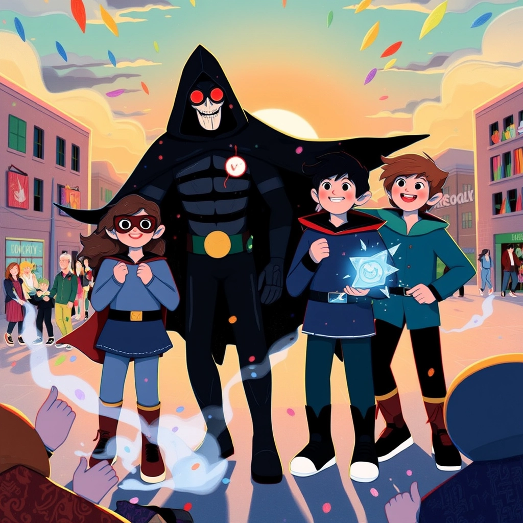 With [Dr. Shadow](W2NNZ5X5) gone, the city cheered for Team Tetra and their heroic courage. The siblings knew their adventure had just begun.