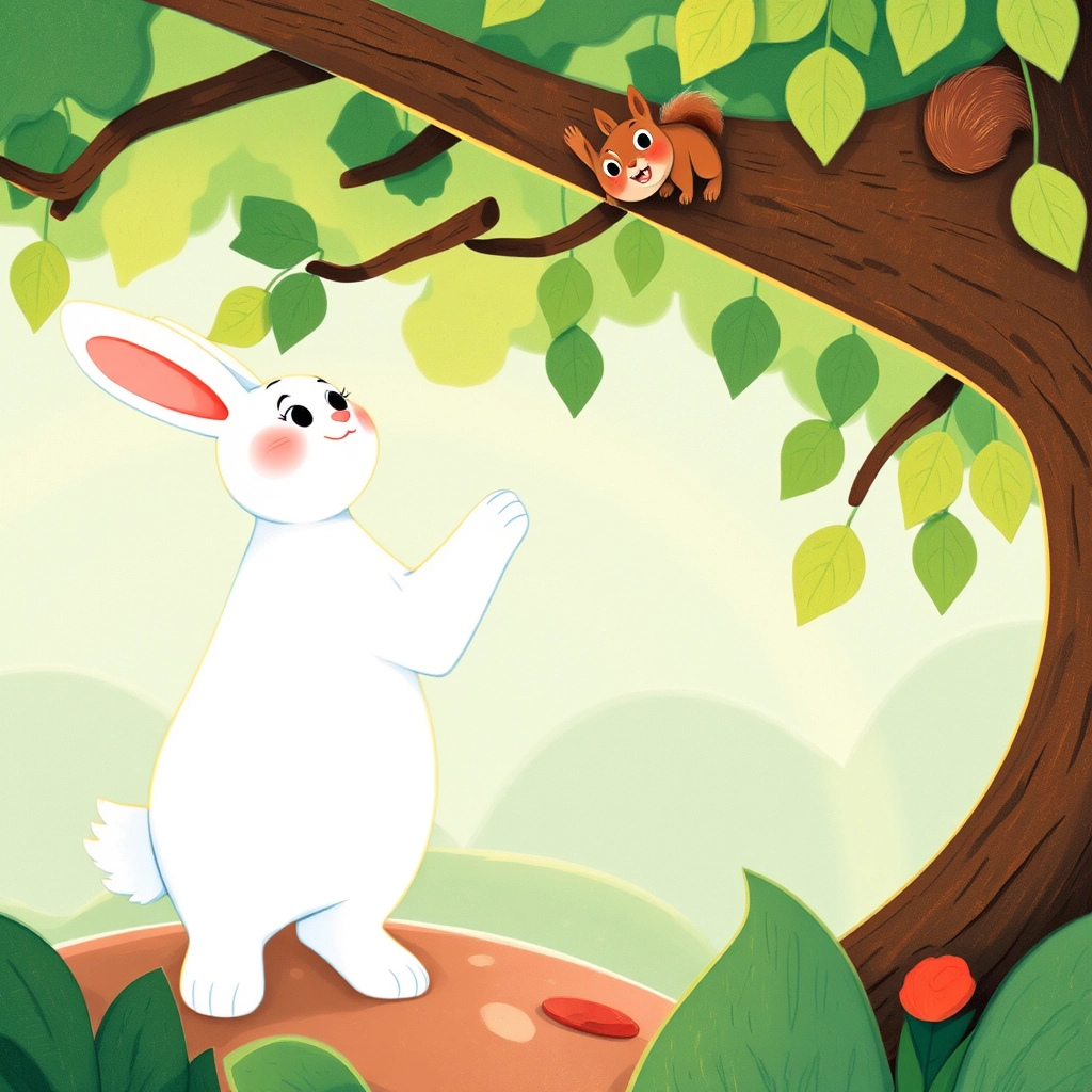 قال الأرنب: 'لا، لكن ربما [السنجاب البني](WTN7DZBC) يعرف مكانها. إنه يحب المراقبة من الأشجار.'