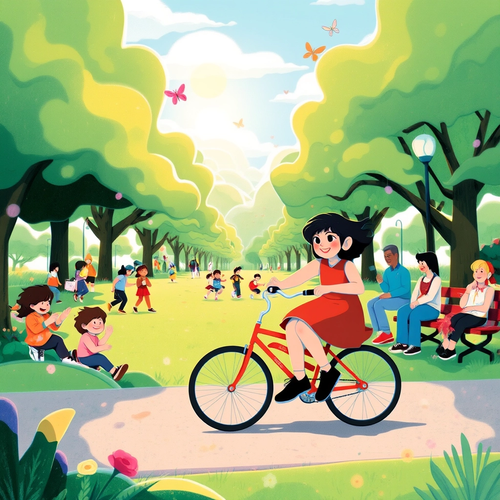 كان الجو مشمساً وهادئاً عندما قررت أسيل أن تذهب إلى الحديقة مع دراجتها الحمراء.