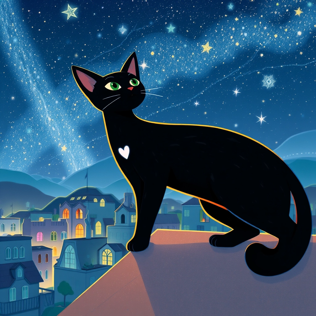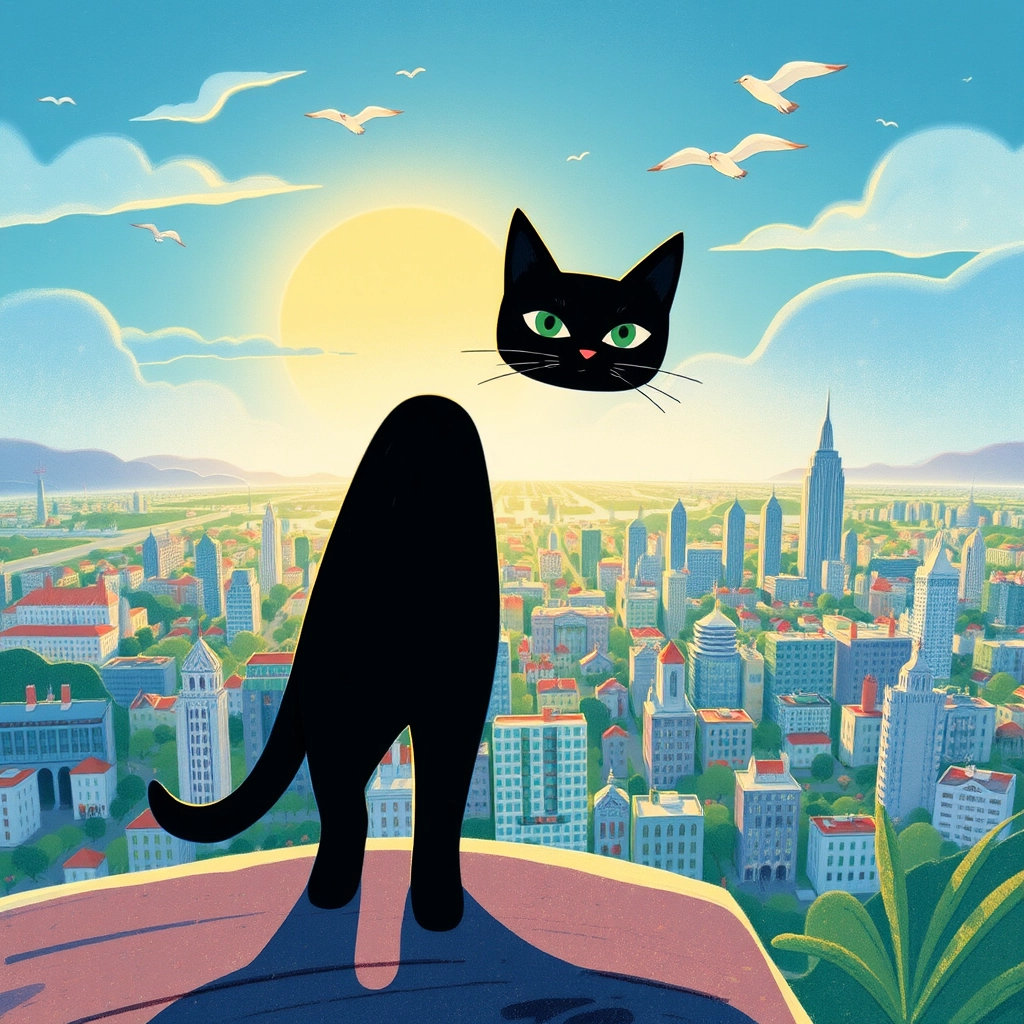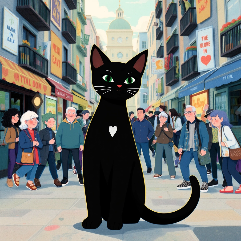 In a city not so far away, a little black cat named [Tel Aviv](KRJZWVRS) would roam the streets each day. With soft paws and curious eyes, she'd explore the alleyways and rooftops under the golden skies.