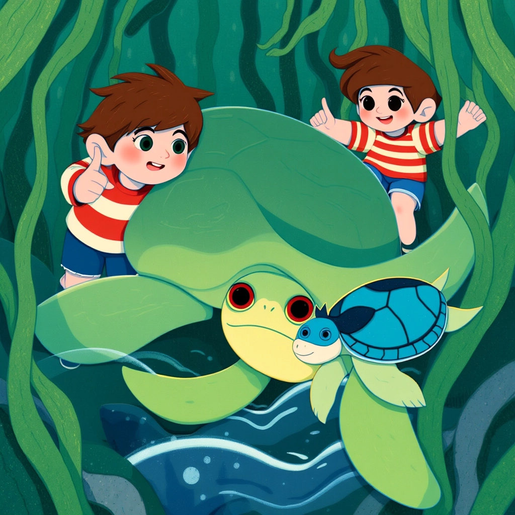 As they explored, they noticed a turtle in trouble, tangled in seaweed. "We have to help him!" [Teokiwa](TCBTMZRT) said.