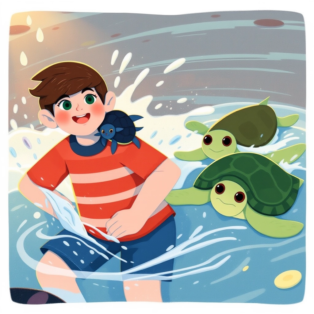 [Teokiwa](TCBTMZRT) and [Sparkle](L46RZ27X) raced [Tiko](VV4ZXZKN) across the tide pool, splashing and laughing all the way.