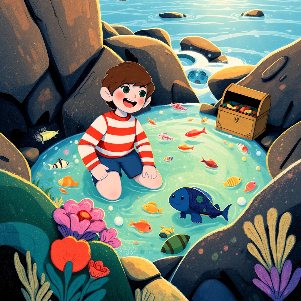 [Sparkle](L46RZ27X) took [Teokiwa](TCBTMZRT) to a hidden tide pool filled with colorful fish and treasures from the sea!