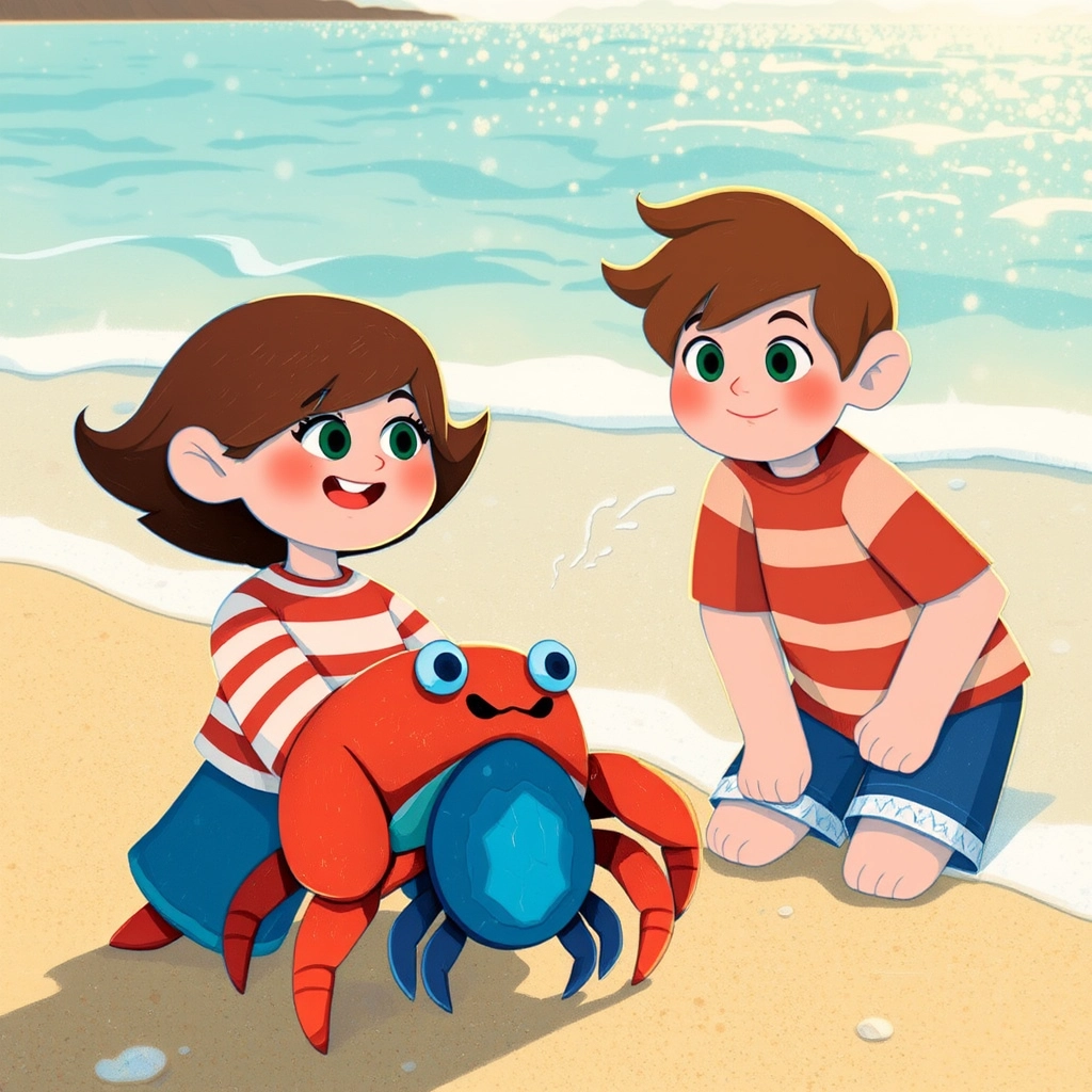 As [Teokiwa](TCBTMZRT) dug it up, out popped [Sparkle](L46RZ27X), a friendly little crab with a bright sapphire shell!