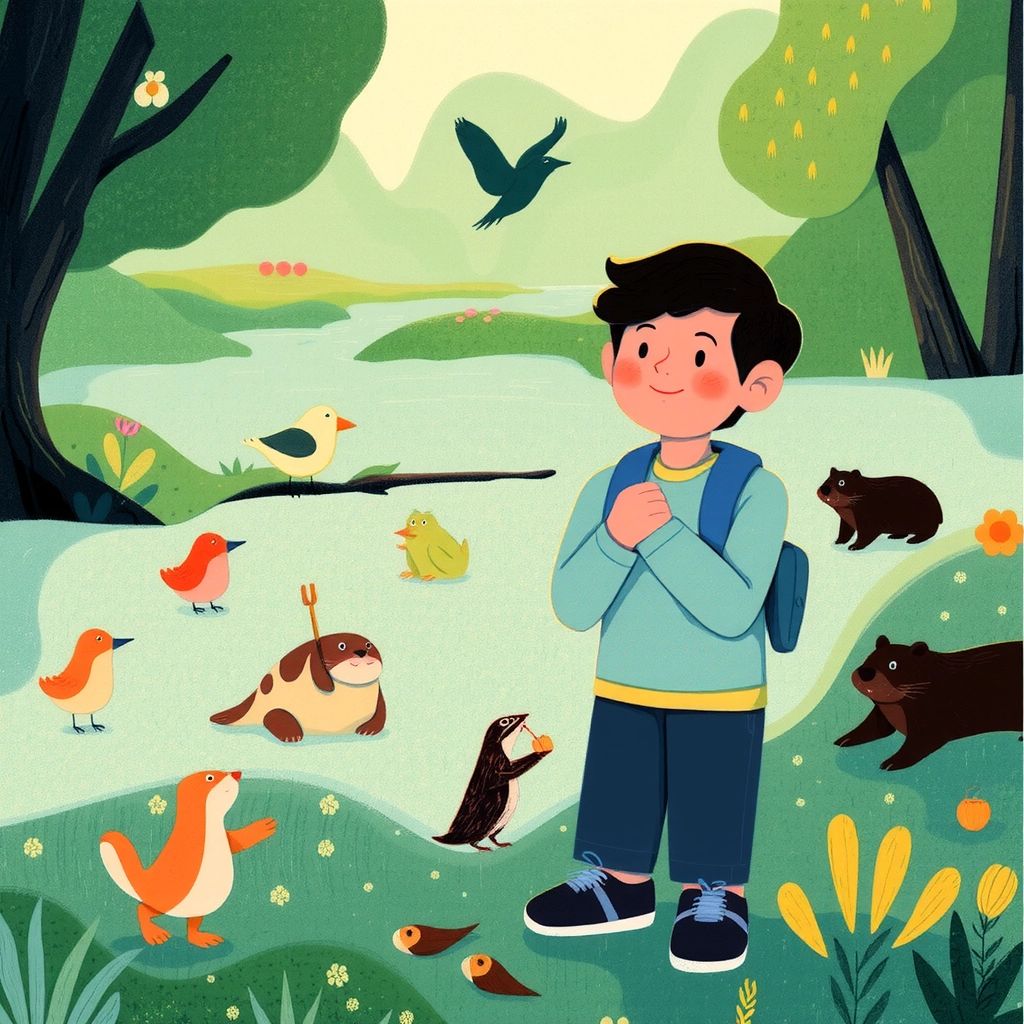 As [Thanh](C7NHDTHQ) wandered deeper into the forest, he heard a melodic song. Following the sound, he discovered a river where a family of singing animals gathered.