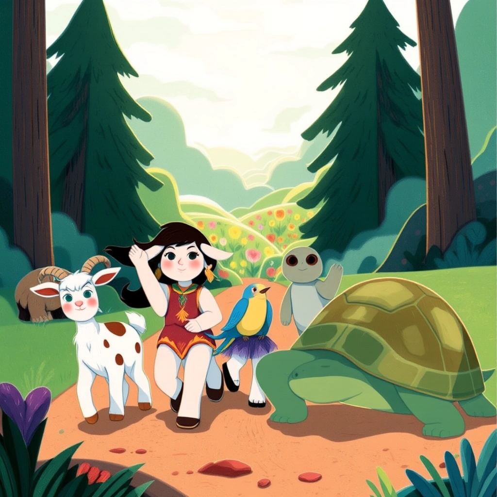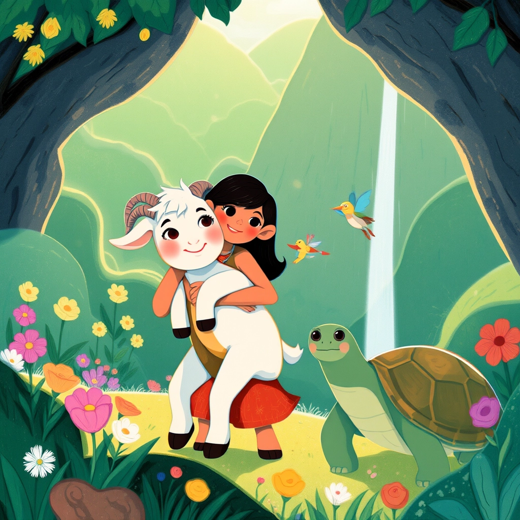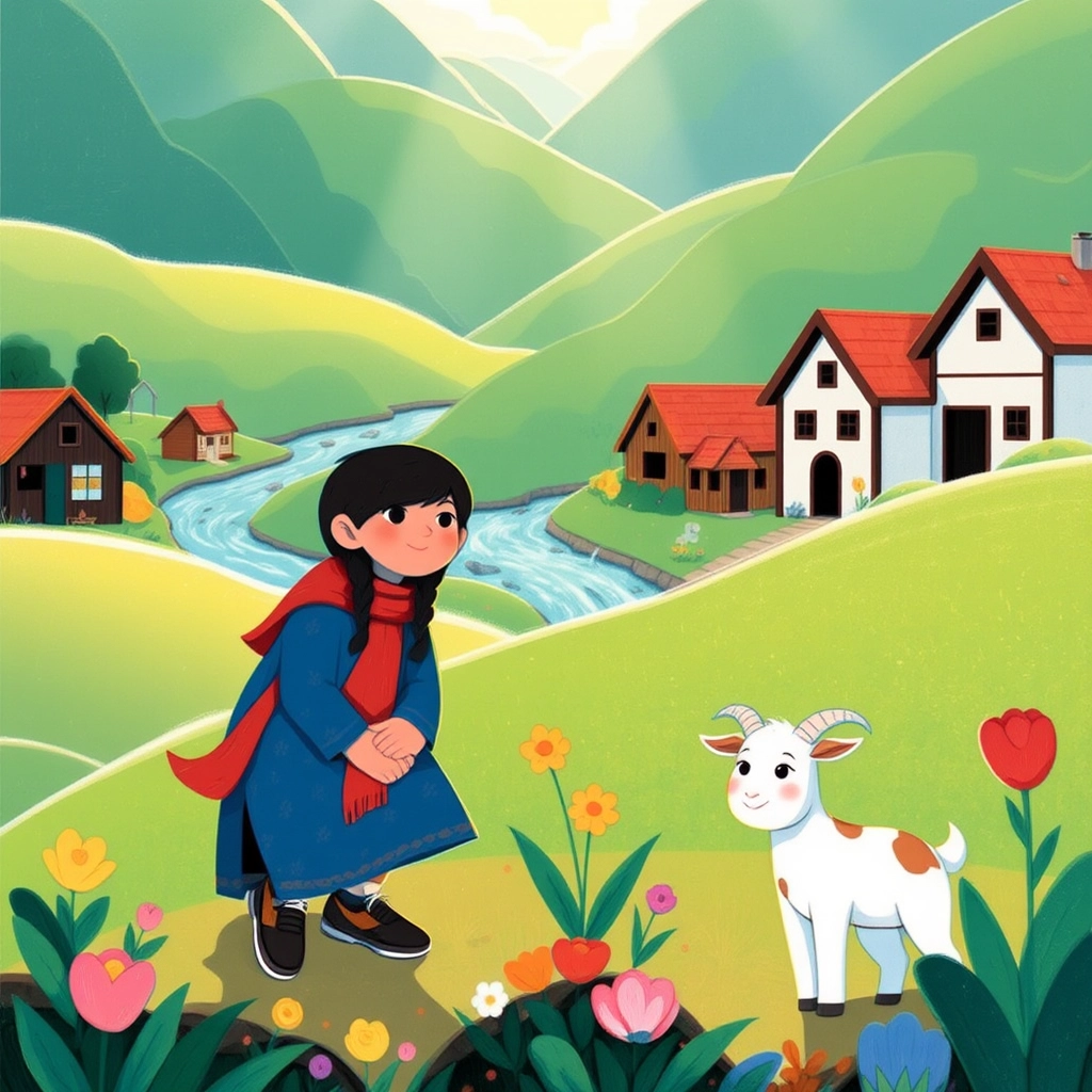 In a small village nestled in the hills of Nepal, [Little Maya](VCTJDR4B) lived a happy life. She loved exploring nature, collecting flowers, and playing with her best friend, [Golu](LJ2NFH75) the goat.