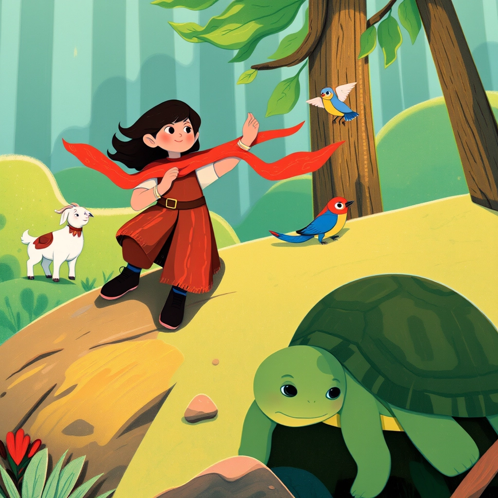 One morning, Maya woke up to find [Golu](LJ2NFH75) missing! Worried, she grabbed her basket, tied her scarf tight, and decided to search the forest with bravery in her heart.