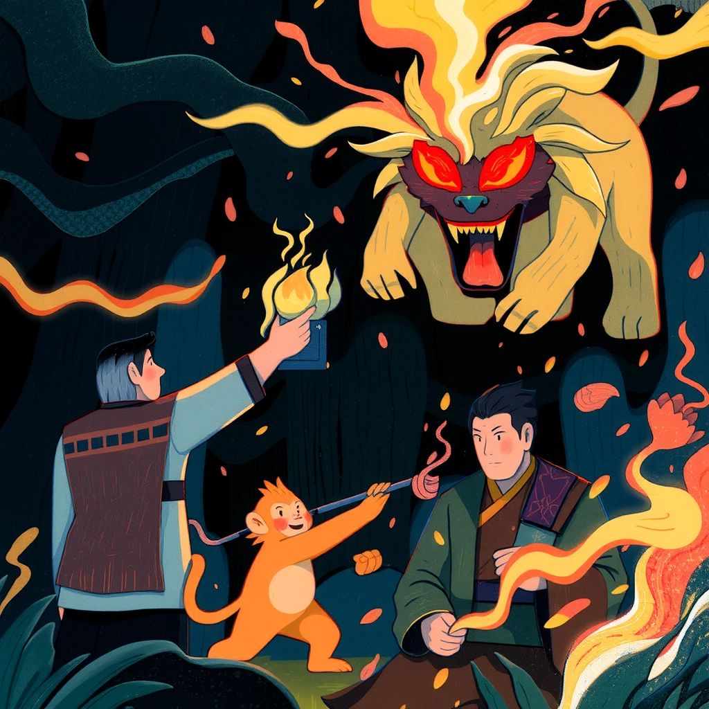 Embarking on their journey, [Sun Wukong](5YDF55PT) and [Xuanzang](BBBDKLRN) soon faced a fearsome demon, Baigujing. But with clever tricks and [Sun Wukong](5YDF55PT)’s ability to transform into a giant lion, they overcame the threat.