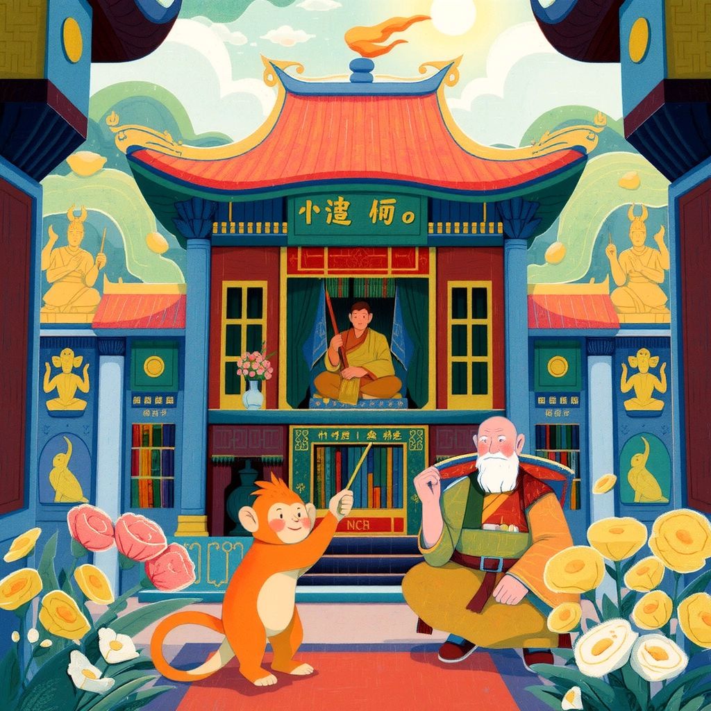 After a long journey, [Sun Wukong](5YDF55PT) found the Temple of Enlightenment. Inside, a gentle monk named [Xuanzang](BBBDKLRN) waited, needing the Monkey King's help to retrieve sacred scriptures from the West.