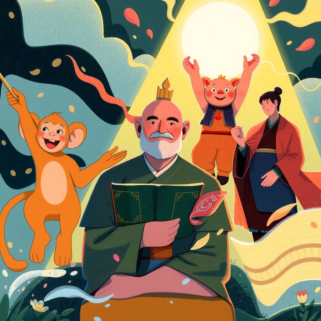 As their journey continued, the group gained another member, [Sha Wujing](C3KJTTQQ), a wise and strong monk. Together, they felt more united and ready for challenges ahead.