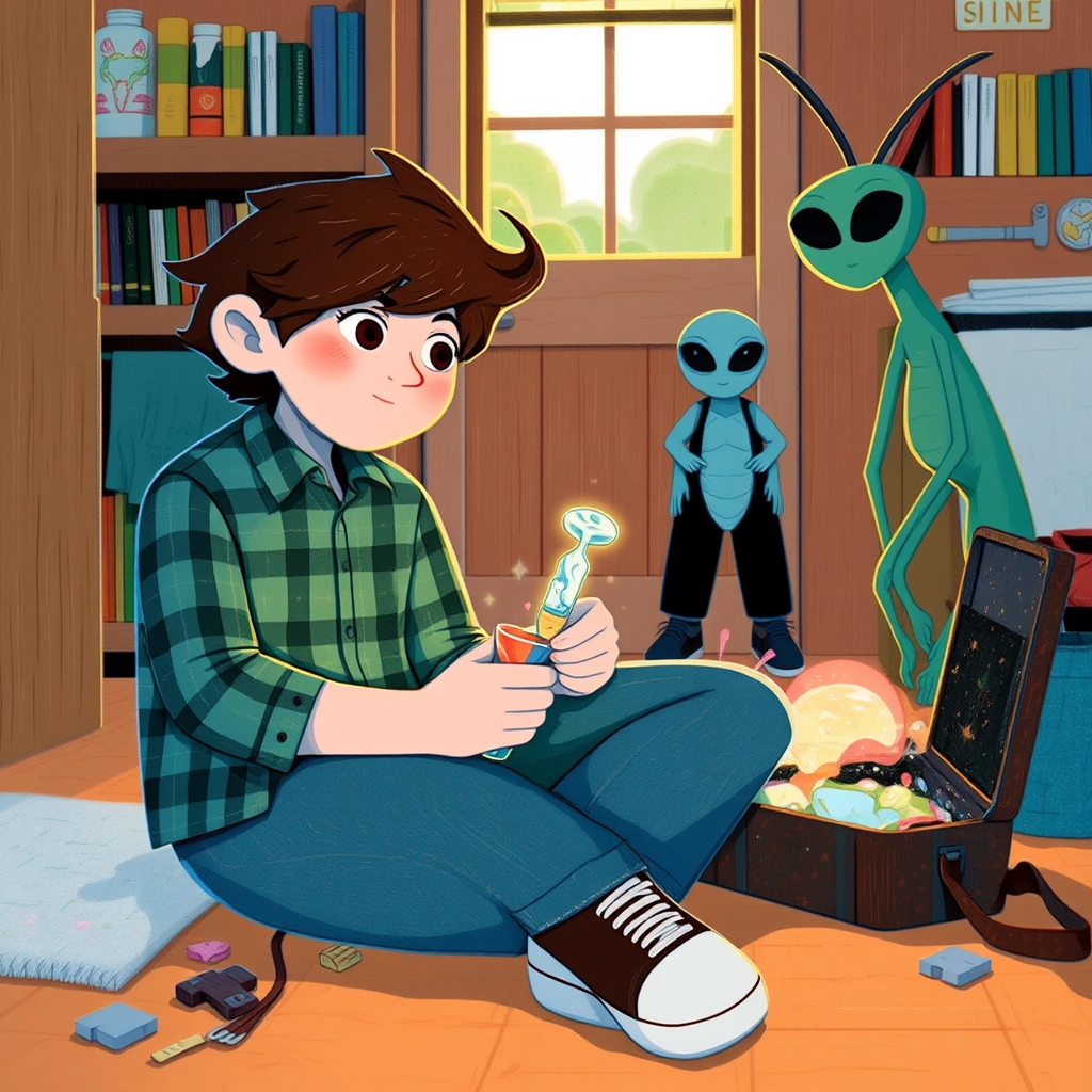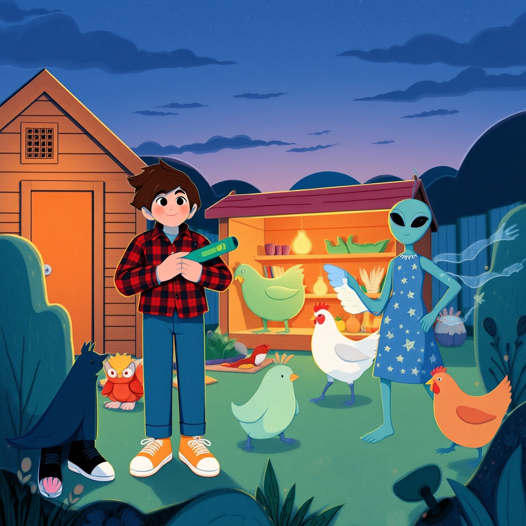 And so, life on the farm carried on, full of laughter, glowing chicken coops, and plenty of alien adventures. It was the start of an unusual but amazing friendship that would last a lifetime.