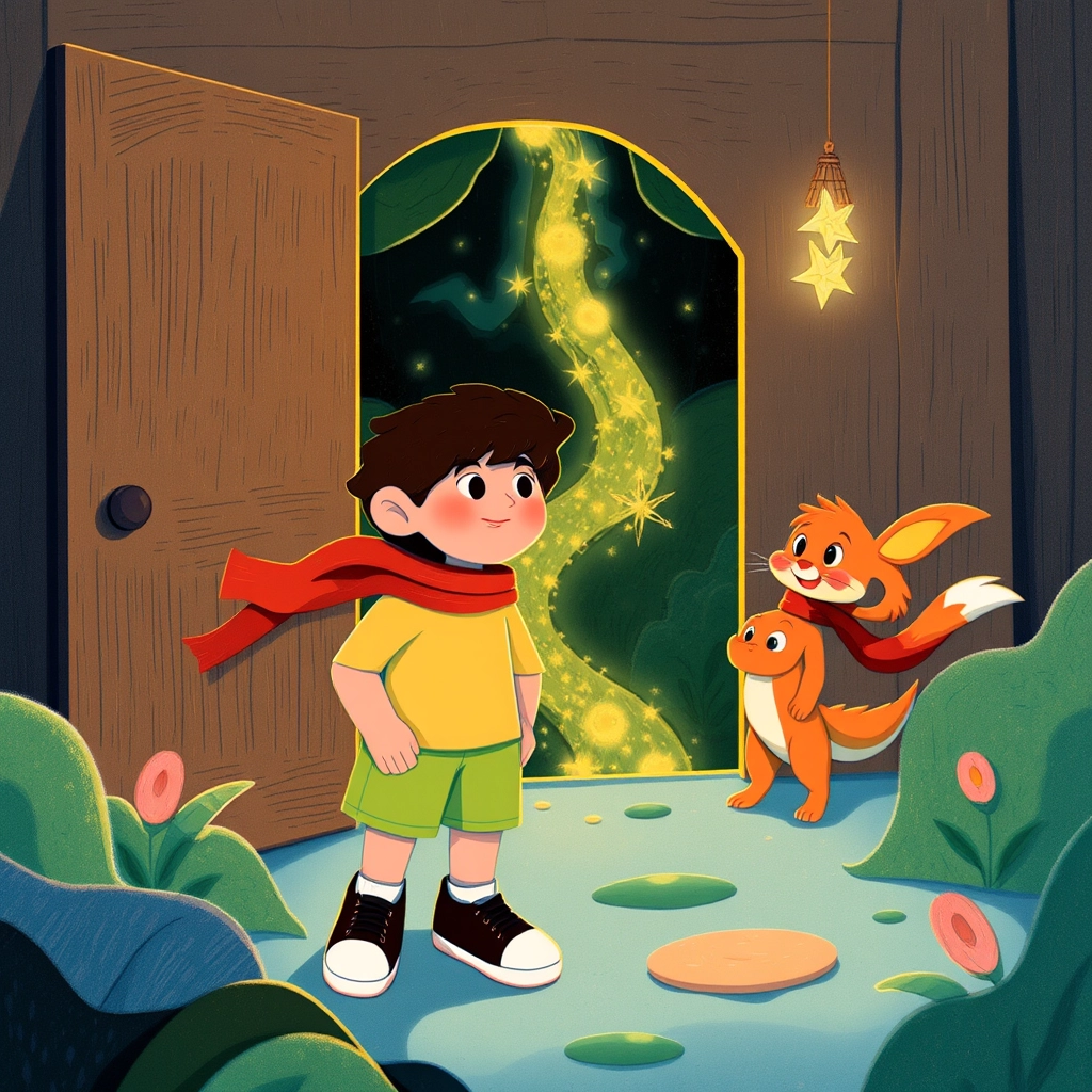 In a cheerful little house at the edge of a bustling town, young [Tom](VM9NML7Q) and his best friend, [Sparky](Y3CP2SHS) the fox, discovered a peculiar little door at the back of [Tom](VM9NML7Q)’s grandma’s garden.