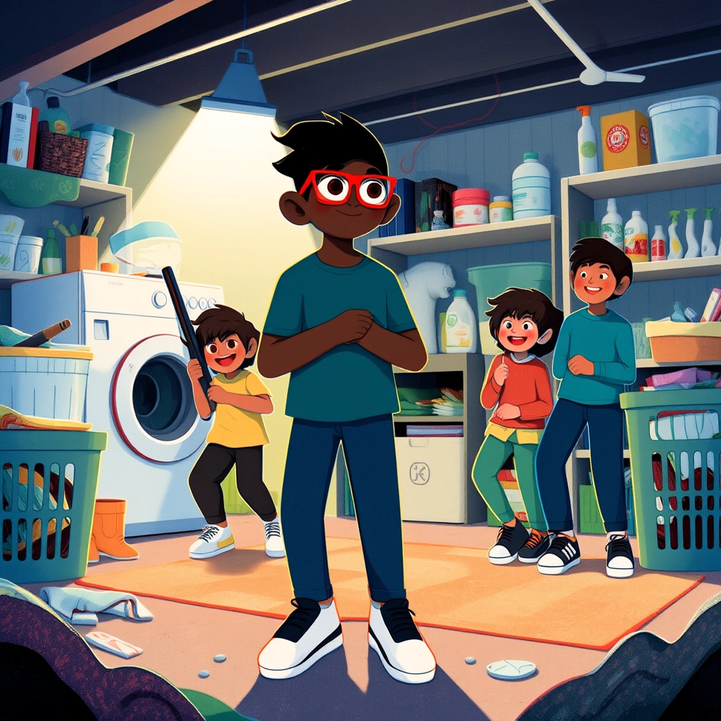 After finishing their mission, the trio carried the baskets upstairs triumphantly. 'We faced the Boon Doon Man and won!' [Cleon](4W5Q7S2Z) cheered. [Trinity](ZLSWZ6N3) nodded, 'I’m glad we did it together.' [Vonte](NQ94Q4GV) winked, 'Teamwork really does make the dream work!' The three of them laughed as they placed the laundry upstairs, feeling braver than ever.