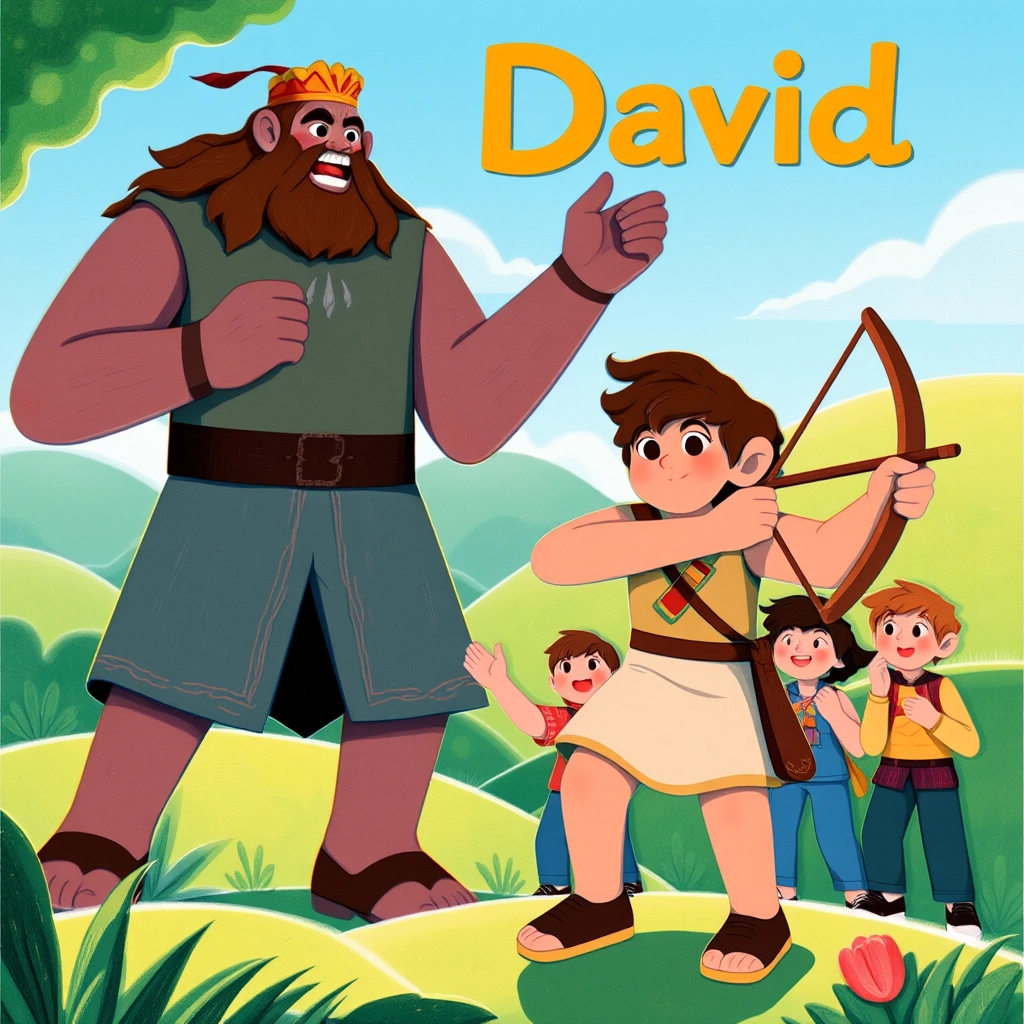 [David](P6QTVNQL), a young shepherd, faced a giant named Goliath with just a slingshot and a rock. With God’s help, he won the battle and showed that even the smallest can do big things!
